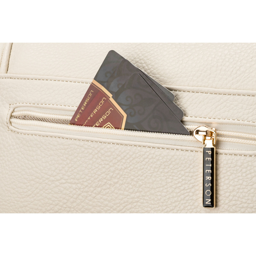 Geanta elegantă de damă de la Peterson este combinația perfectă între eleganță și confort. Fabricată din piele ecologică de înaltă calitate, se mândrește cu un design modern și un finisaj meticulos. Perfectă atât pentru uzul zilnic, cât și pentru ocazii speciale.