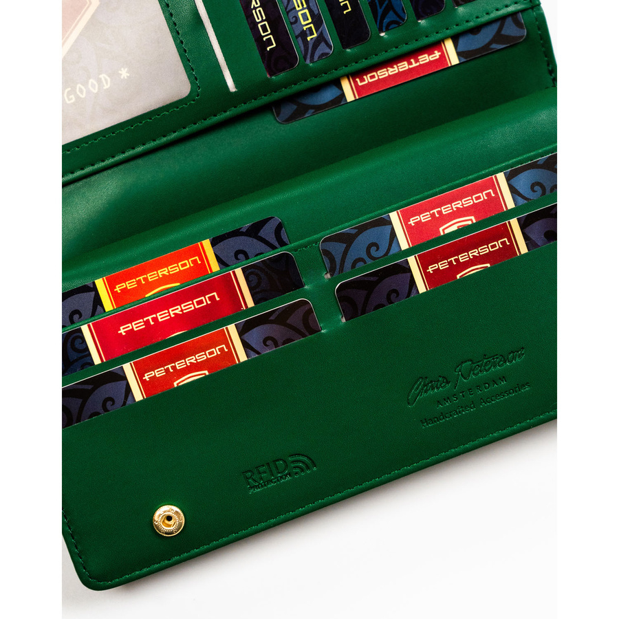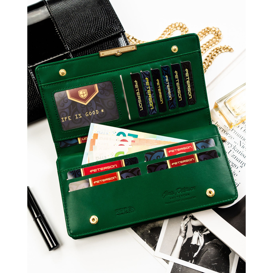 Ta część portfela PETERSON została zaprojektowana z myślą o wygodnym przechowywaniu kart, wizytówek i dokumentów – wszystko w jednym, uporządkowanym miejscu. Komora zapinana jest na dwa solidne zatrzaski, które chronią zawartość przed przypadkowym otwarciem.