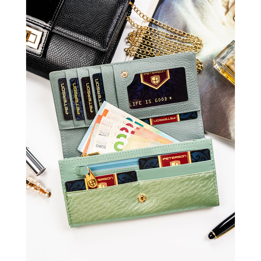 Duży portfel damski Peterson pozwala zachować porządek i szybki dostęp do najważniejszych rzeczy.