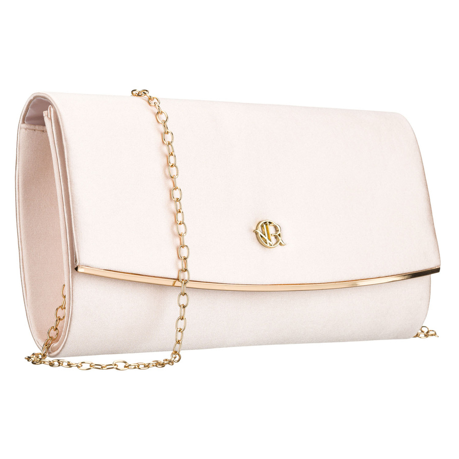 Geantă tip clutch bej pentru femei, confecționată din material sintetic, cu buzunar interior - Rovicky