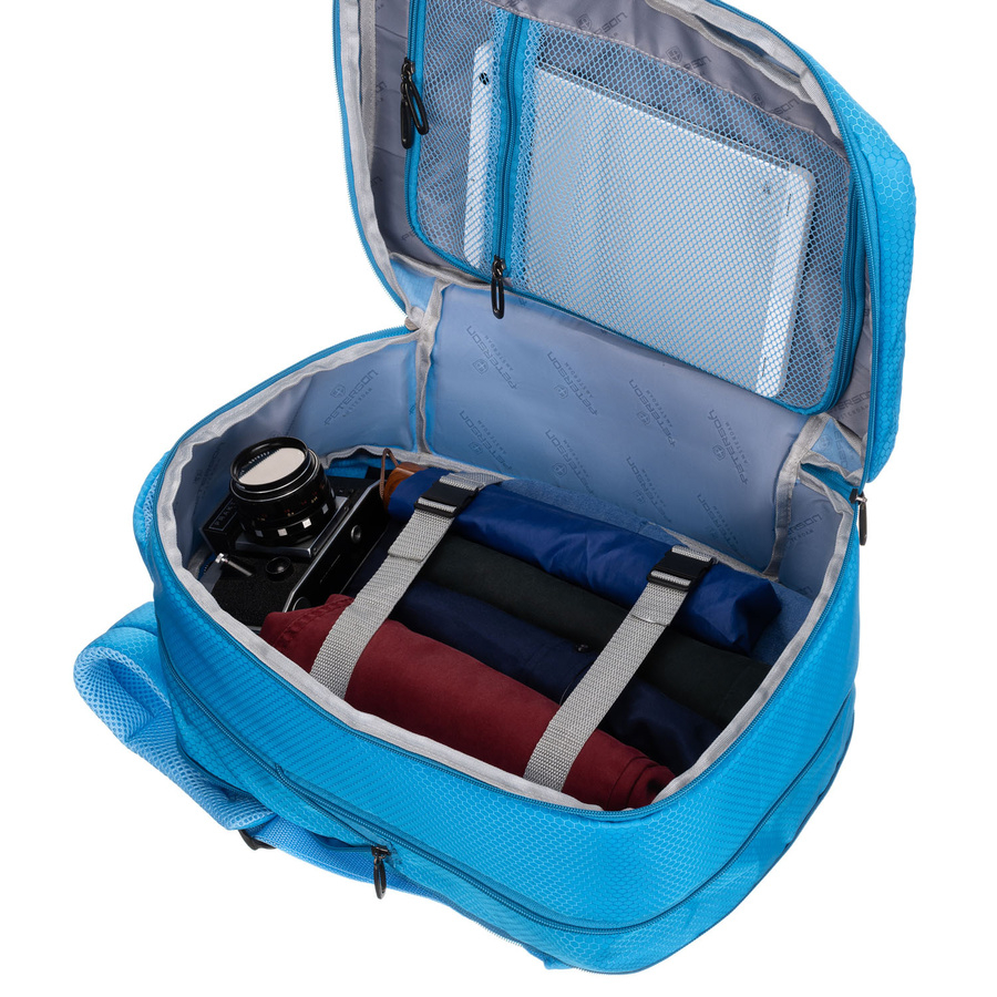 Cel mai mare avantaj al rucsacului este compartimentul său principal, conceput pentru o ambalare convenabilă. Se deschide pe toată lungimea sa – exact ca o valiză de cabină. Acest lucru vă oferă vizibilitate completă asupra conținutului și acces facil la fiecare articol, fără a fi nevoie să căutați.