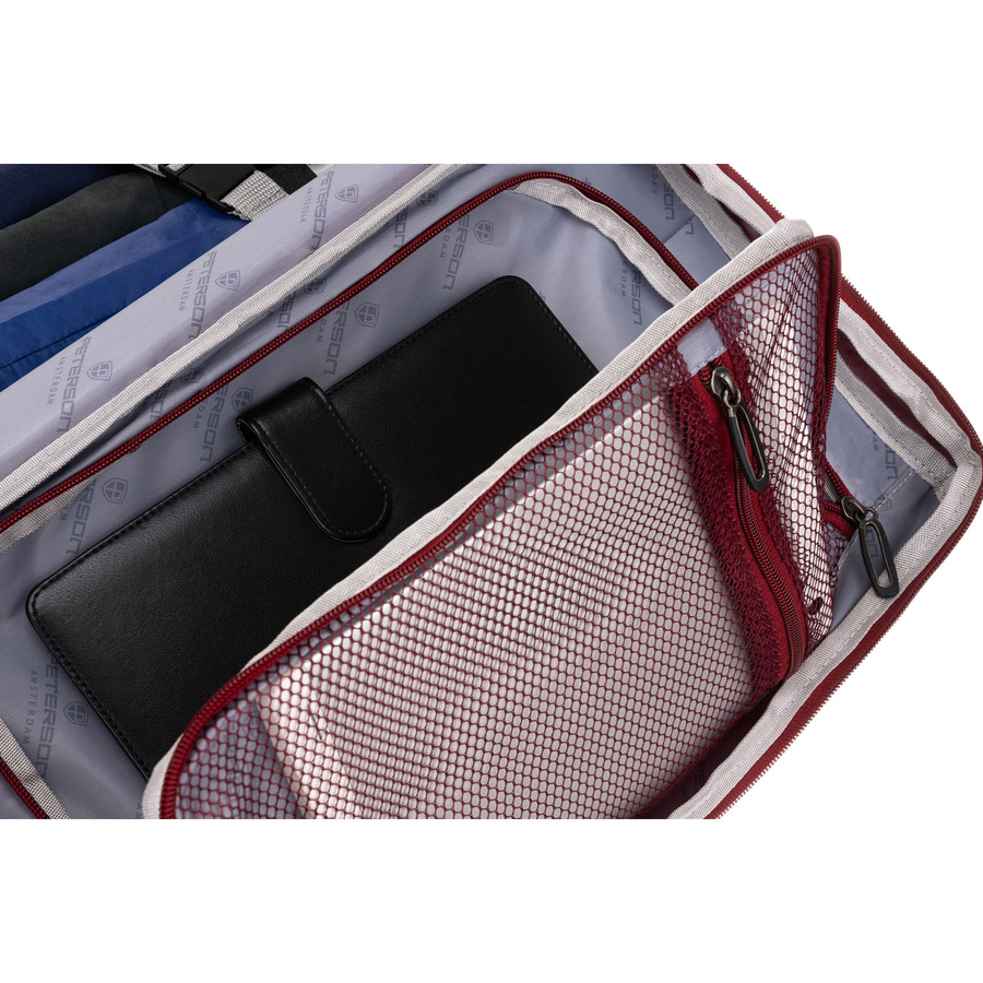 Un rucsac care îndeplinește cerințele companiilor aeriene, rămânând în același timp funcțional, confortabil și durabil. Acest model Peterson combină un design atent, o organizare interioară excelentă și un format compact care respectă limitele restrictive pentru bagajul de mână gratuit.