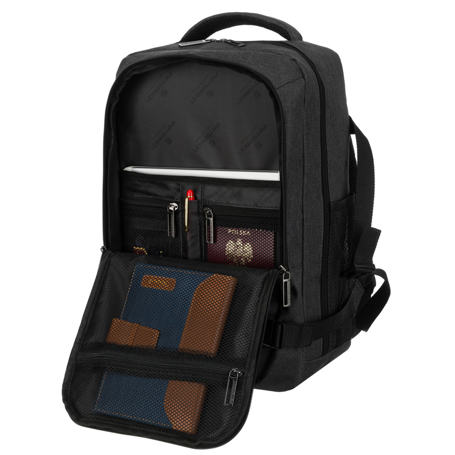 Un rucsac spațios, ideal pentru călătorii, din poliester negru, perfect pentru bagajul de mână - Peterson