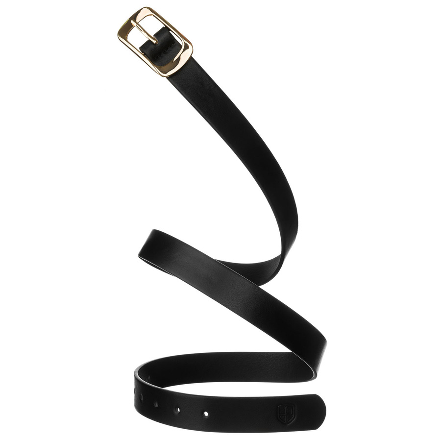 Curea de damă neagră, îngustă, din piele ecologică, cu cataramă aurie - Peterson