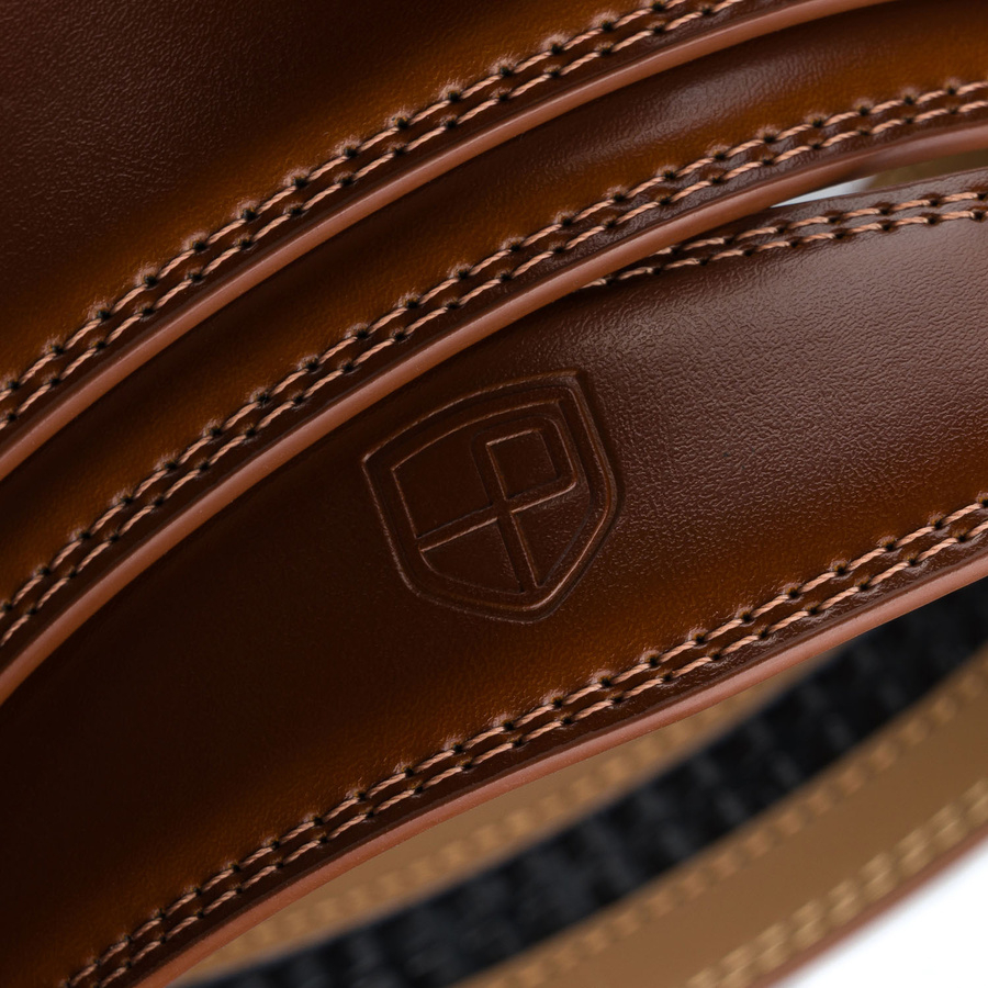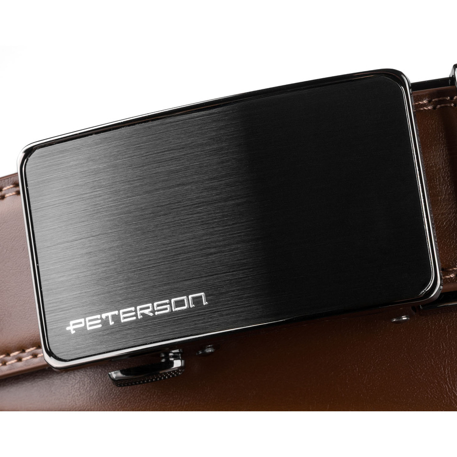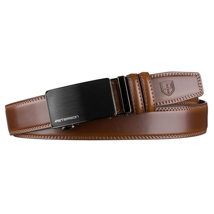 Pasek męski z automatyczną klamrą wykonany ze skóry naturalnej w brązowym kolorze - Peterson