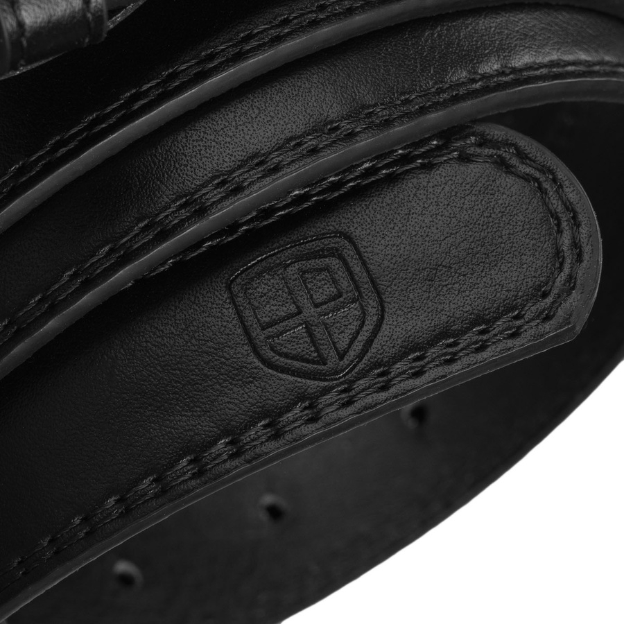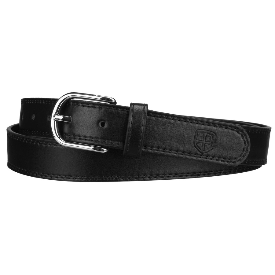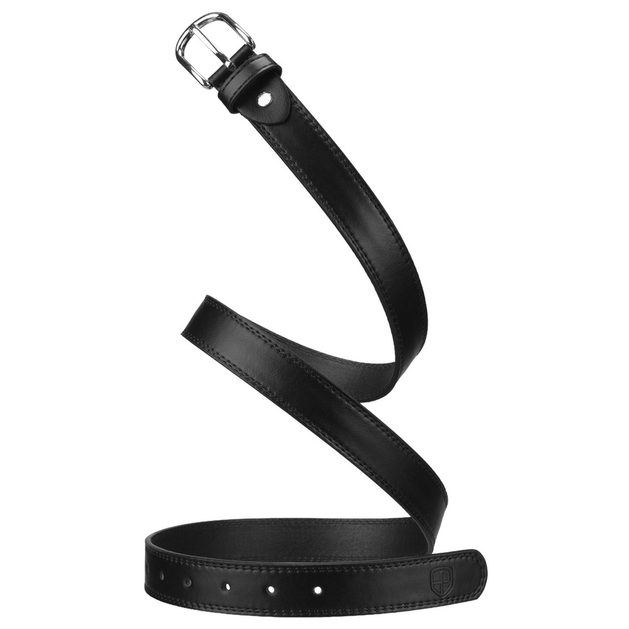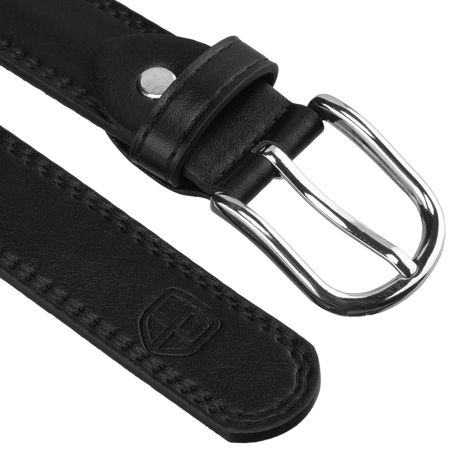 Czarny pasek damski ze skóry ekologicznej z klasyczną, srebrną klamrą - Peterson