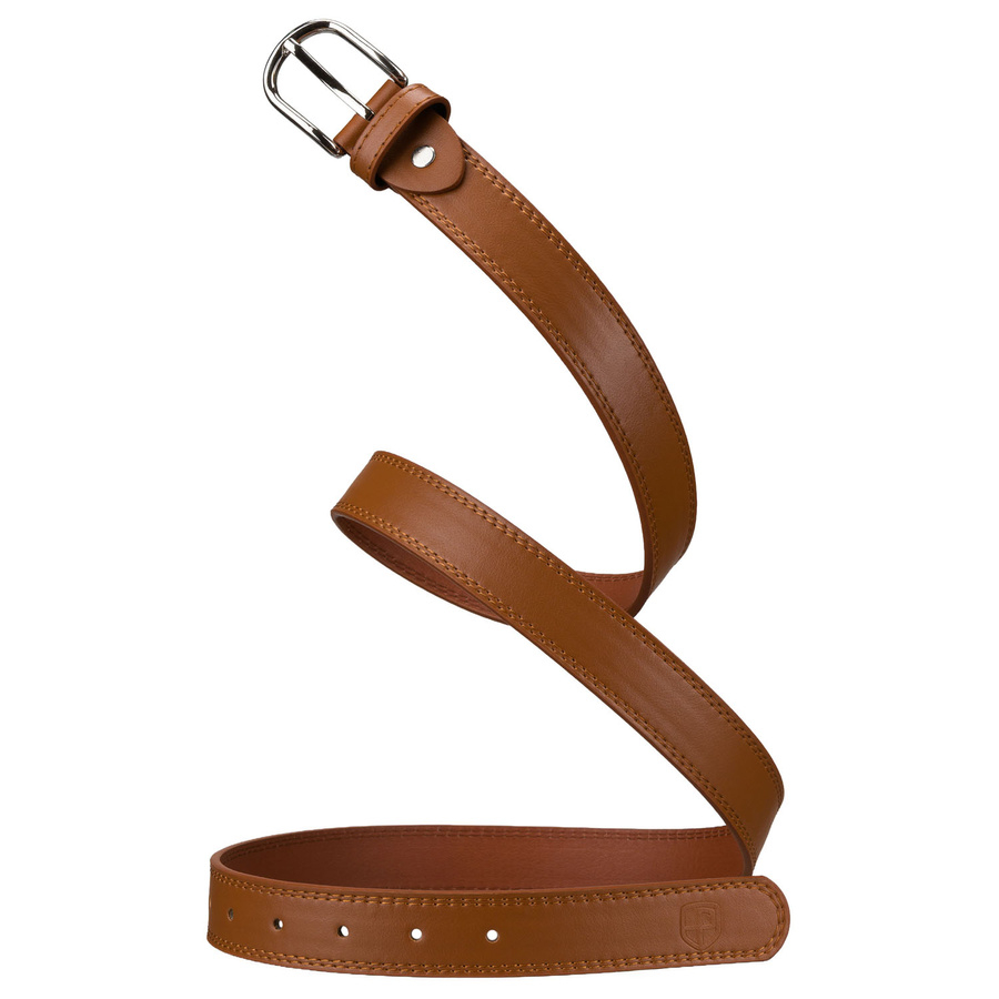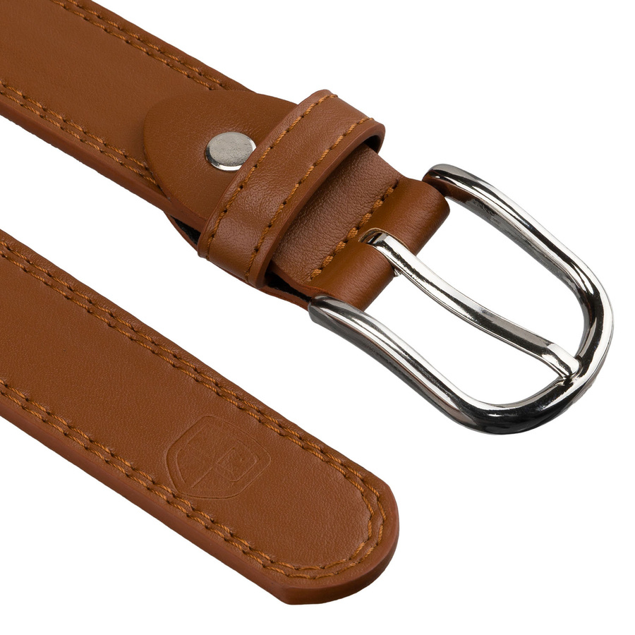 Pasek wykonano z wysokiej jakości skóry ekologicznej o eleganckiej, subtelnej fakturze, która prezentuje się estetycznie i dobrze układa się na sylwetce.