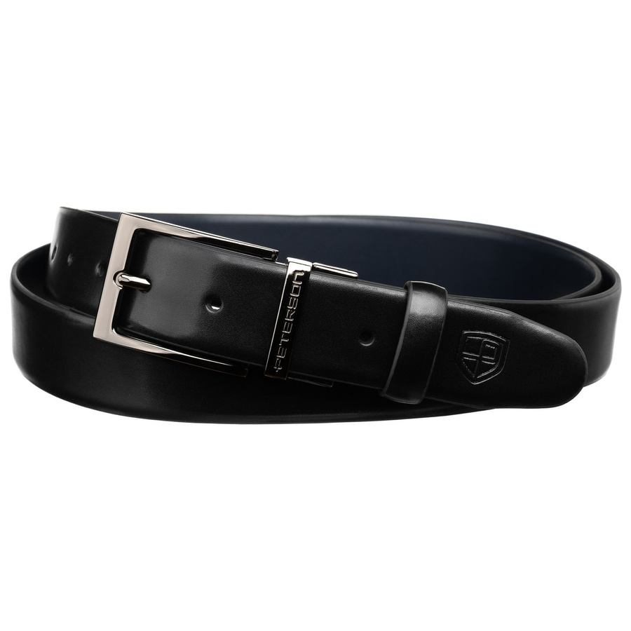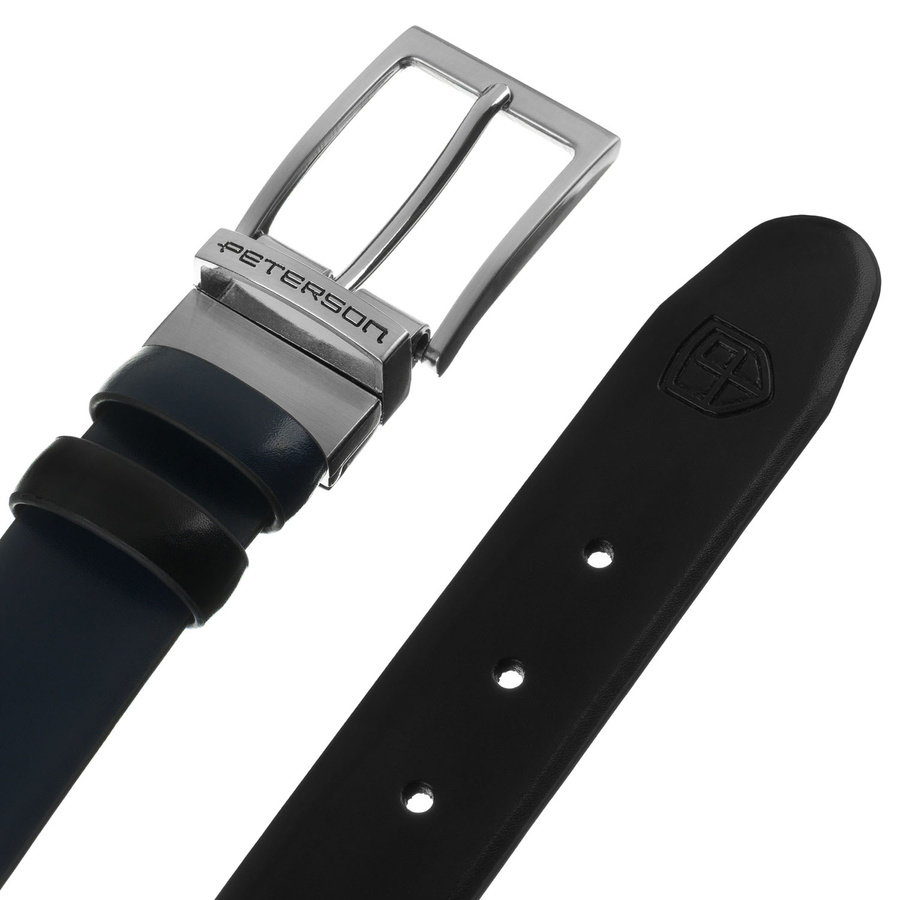 Zestaw prezentowy: dwustronny pasek skórzany w granatowym i czarnym kolorze - Peterson