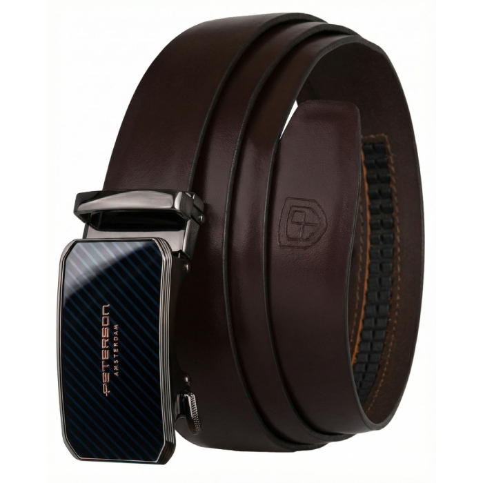 Elegancki pasek męski PETERSON w kolorze ciemnobrązowym to stylowy dodatek dla każdego mężczyzny. Wykonany z wysokiej jakości skóry naturalnej, doskonale sprawdzi się jako pasek do spodni garniturowych, jeansów oraz chinosów.