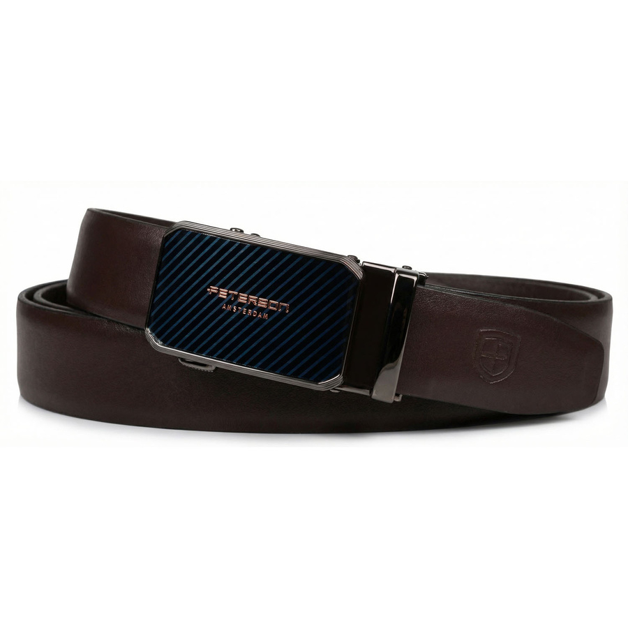 Pasek męski w ciemnobrązowym kolorze z automatyczną, czarna klamrą - Peterson