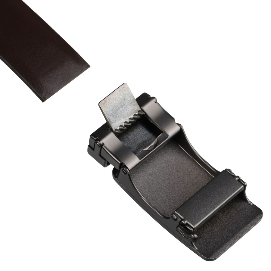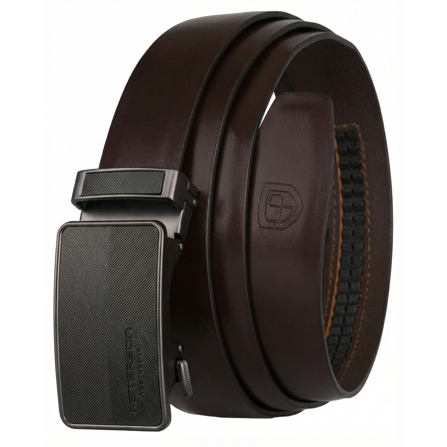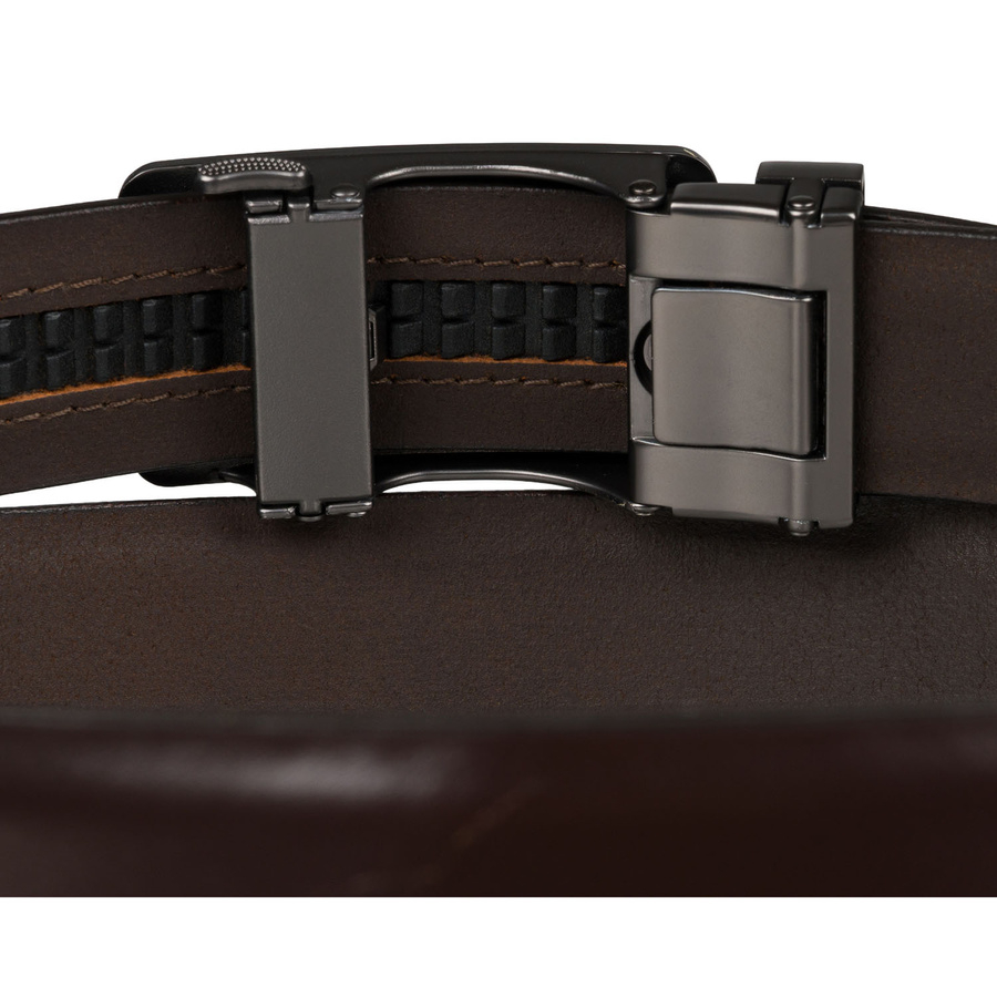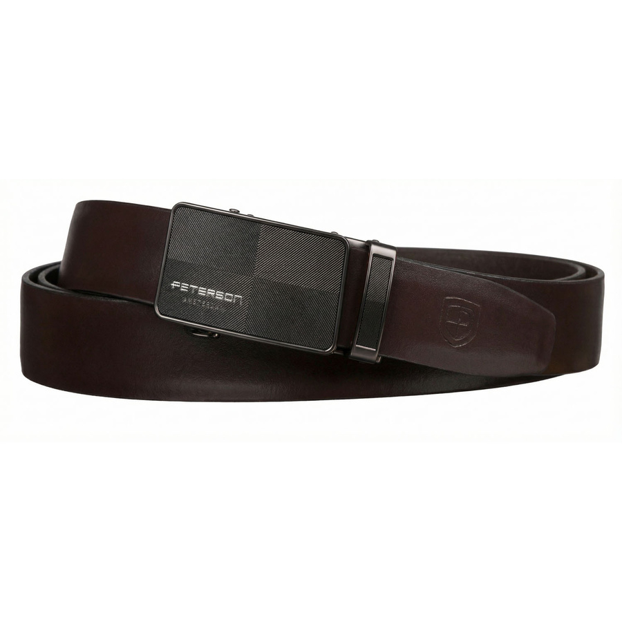 Pasek męski w ciemnobrązowym kolorze wykonany ze skóry naturalnej, wyposażony w klamrę automatyczną - Peterson