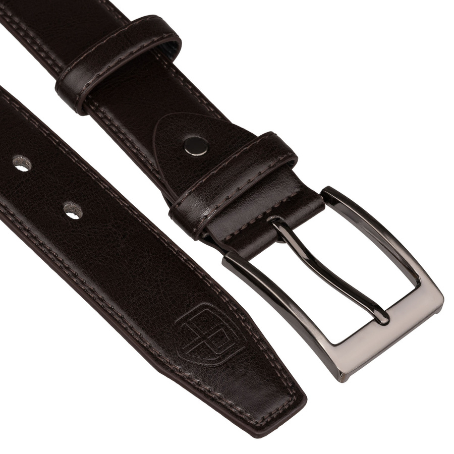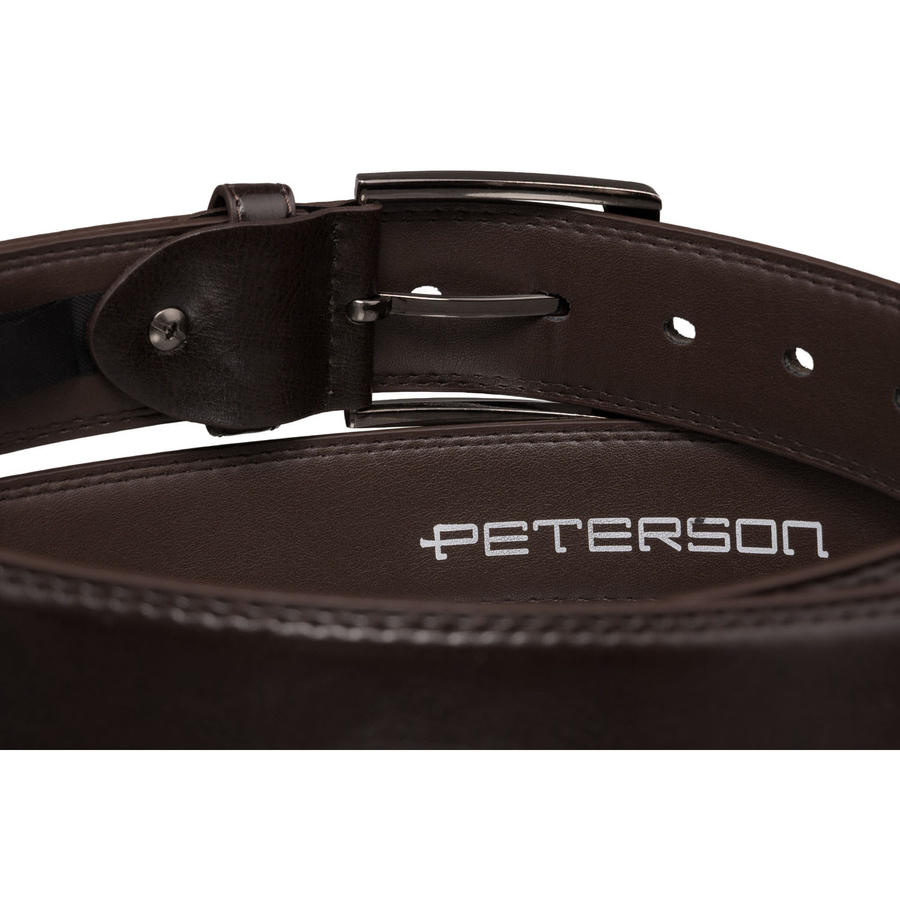 Brązowy, męski pasek ze skóry ekologicznej z tradycyjną klamrą - Peterson