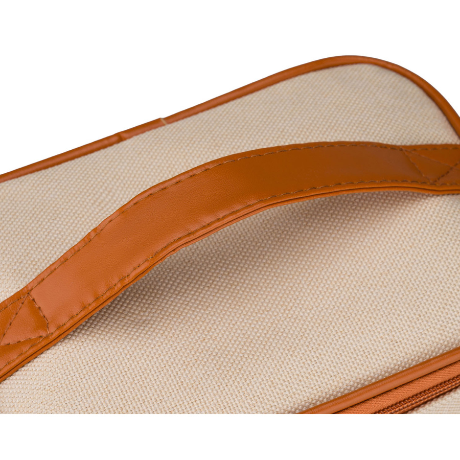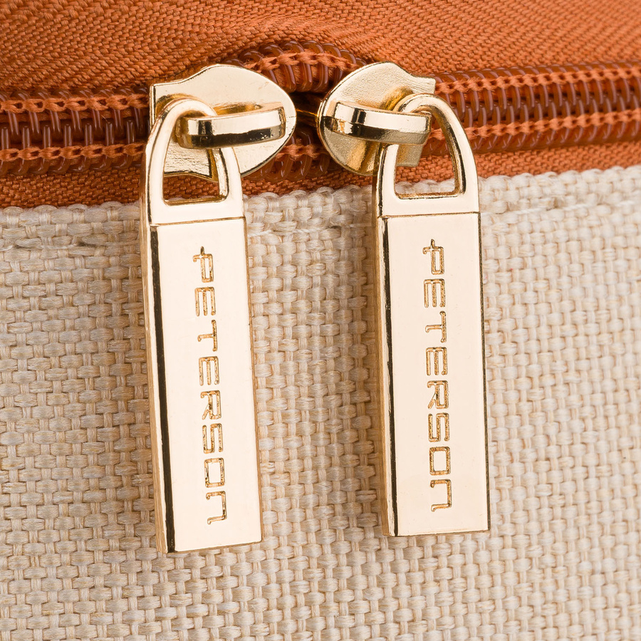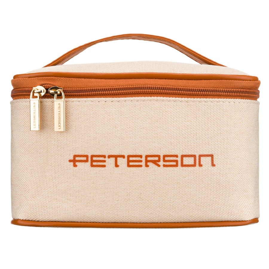 Geantă cosmetică din material sintetic bej și maro, cu mâner și închidere cu fermoar - Peterson