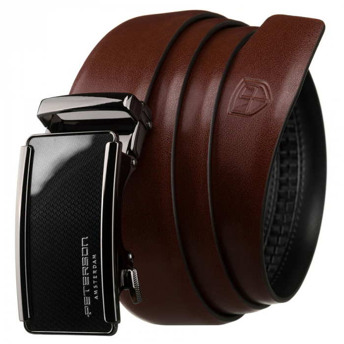Curea clasică bărbătească neagră cu cataramă automată argintie - Peterson