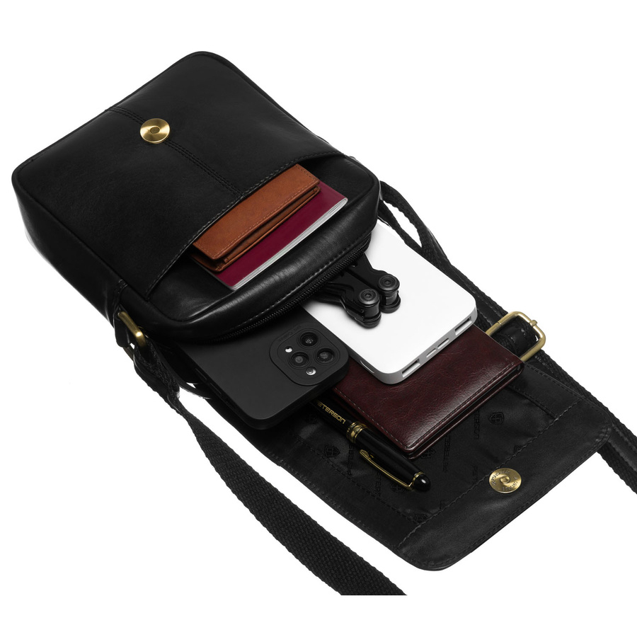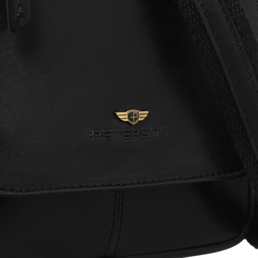 Geantă de umăr din piele neagră pentru bărbați, cu fermoar și închidere cu clip magnetic - Peterson