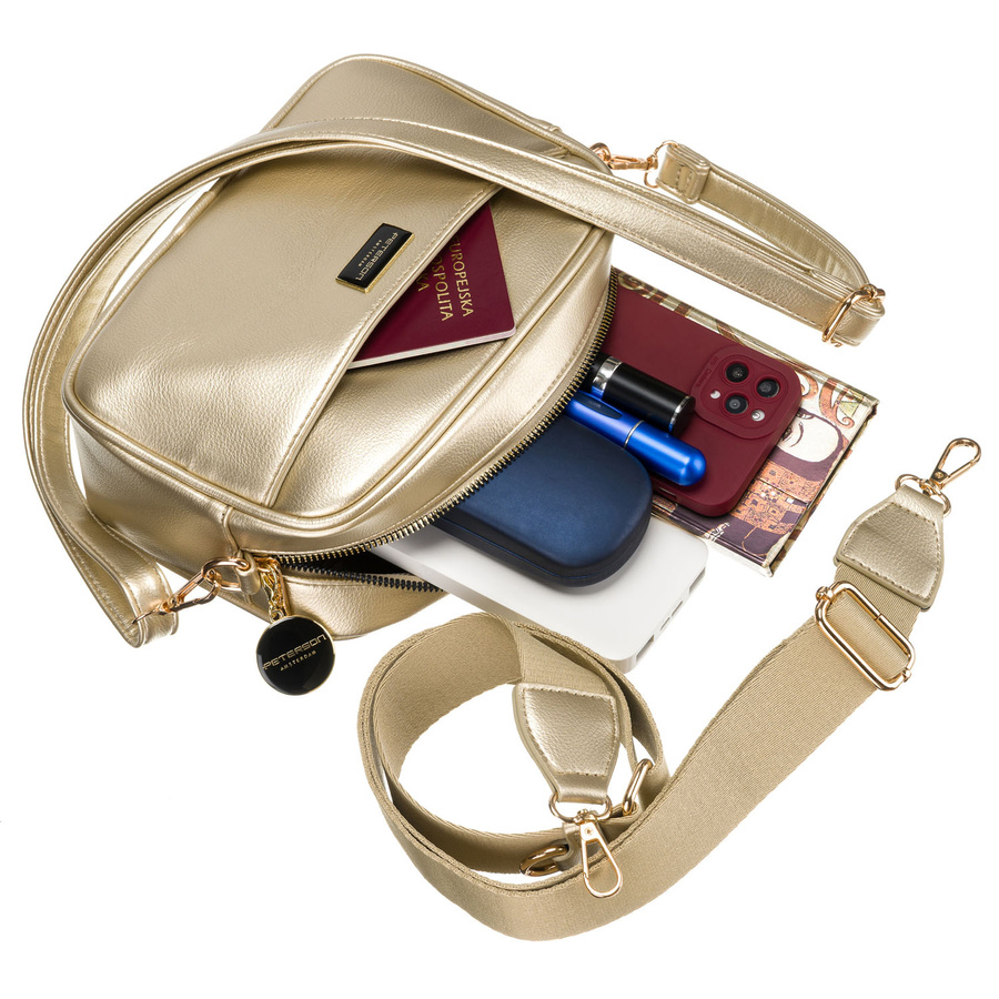 Geantă de damă Peterson din piele ecologică, aurie strălucitoare