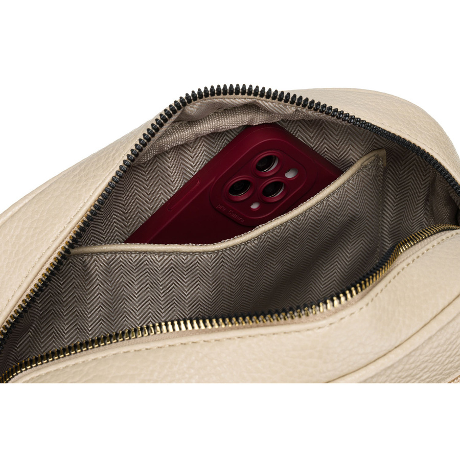 Geantă messenger mică bej pentru femei, din piele ecologică, cu două curele de umăr incluse, Peterson