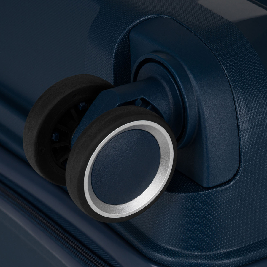 Călătoria necesită bagaje care să poată rezista oricărei situații – de la curelele de bagaje de la aeroport, la transportul cu autocarul, până la condițiile meteorologice schimbătoare. Această valiză este fabricată din polipropilenă – unul dintre cele mai avansate și apreciate materiale din bagajele premium.