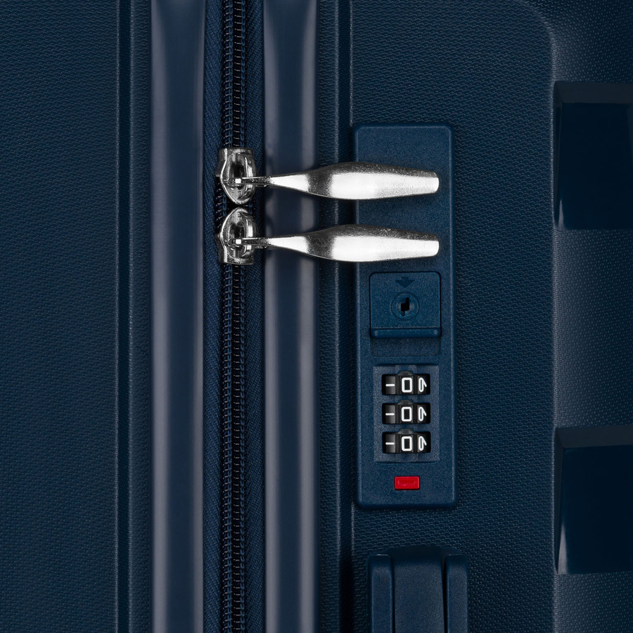 Valiză din polipropilenă, albastru marin, cu carcasă rigidă, dimensiune medie - Peterson