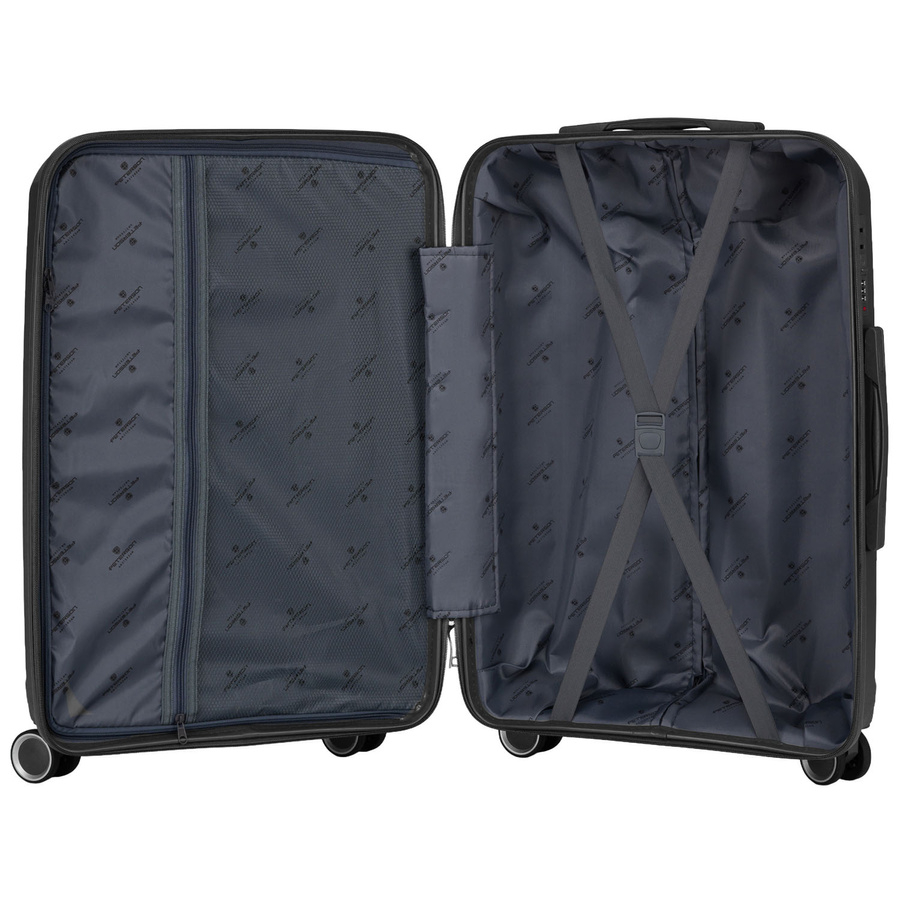 Călătoria necesită bagaje care să poată rezista oricărei situații – de la curelele de bagaje de la aeroport, la transportul cu autocarul, până la condițiile meteorologice schimbătoare. Această valiză este fabricată din polipropilenă – unul dintre cele mai avansate și apreciate materiale din bagajele premium.