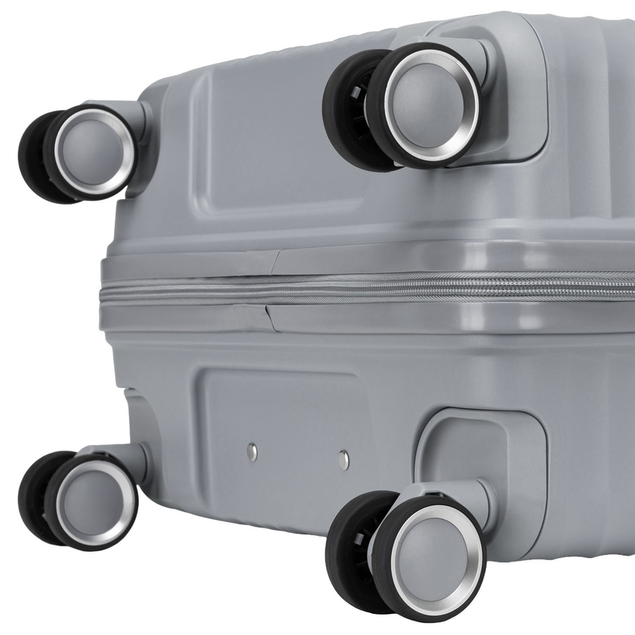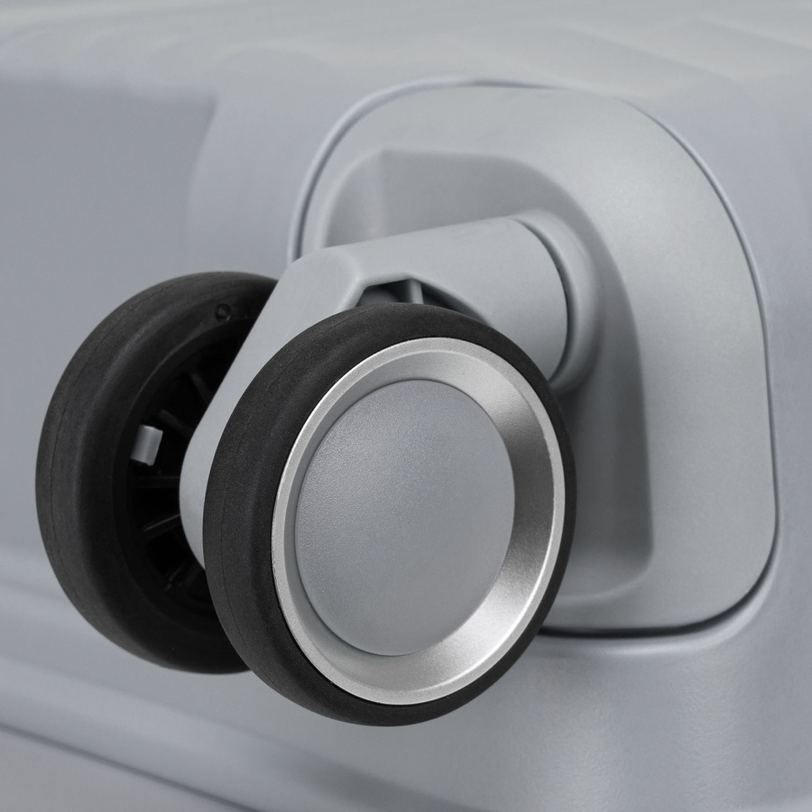 Fiecare roată este ferm încorporată în carcasa valizei, ceea ce crește durabilitatea și stabilitatea în timpul transportului - chiar și atunci când este complet încărcată.