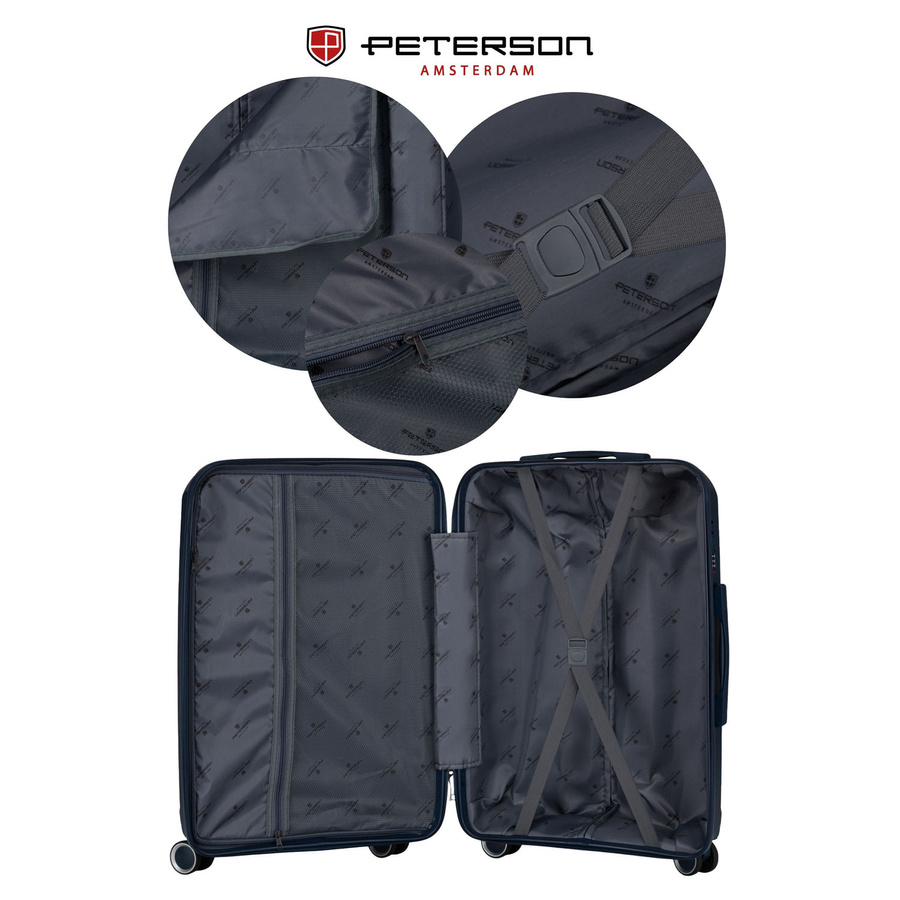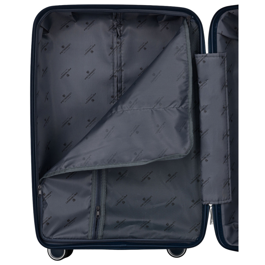 Valiza Peterson® a fost concepută pentru călătorii care apreciază ordinea și confortul în împachetare. Interiorul său spațios asigură că toate bunurile dumneavoastră își au locul lor, facilitând mult călătoria.