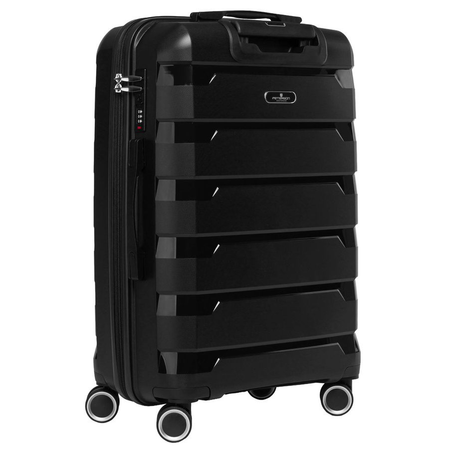 Valiză neagră, de dimensiuni medii, din polipropilenă, cu roți pivotante - Peterson