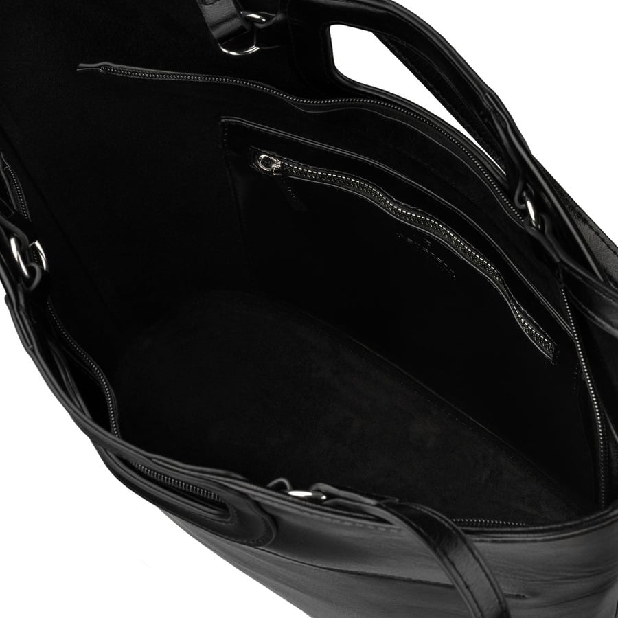Geantă mare de damă, tip shopper, neagră, din piele ecologică, cu închidere cu fermoar - Peterson PTR-PTN TOR-ALE-29 BLACK