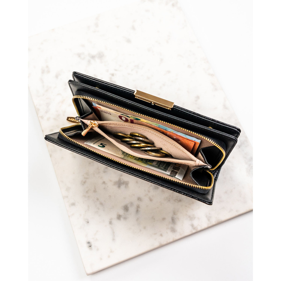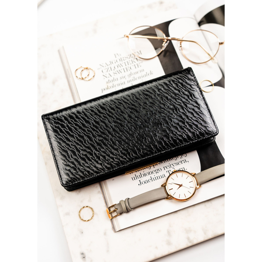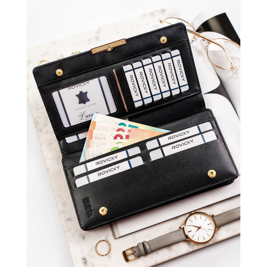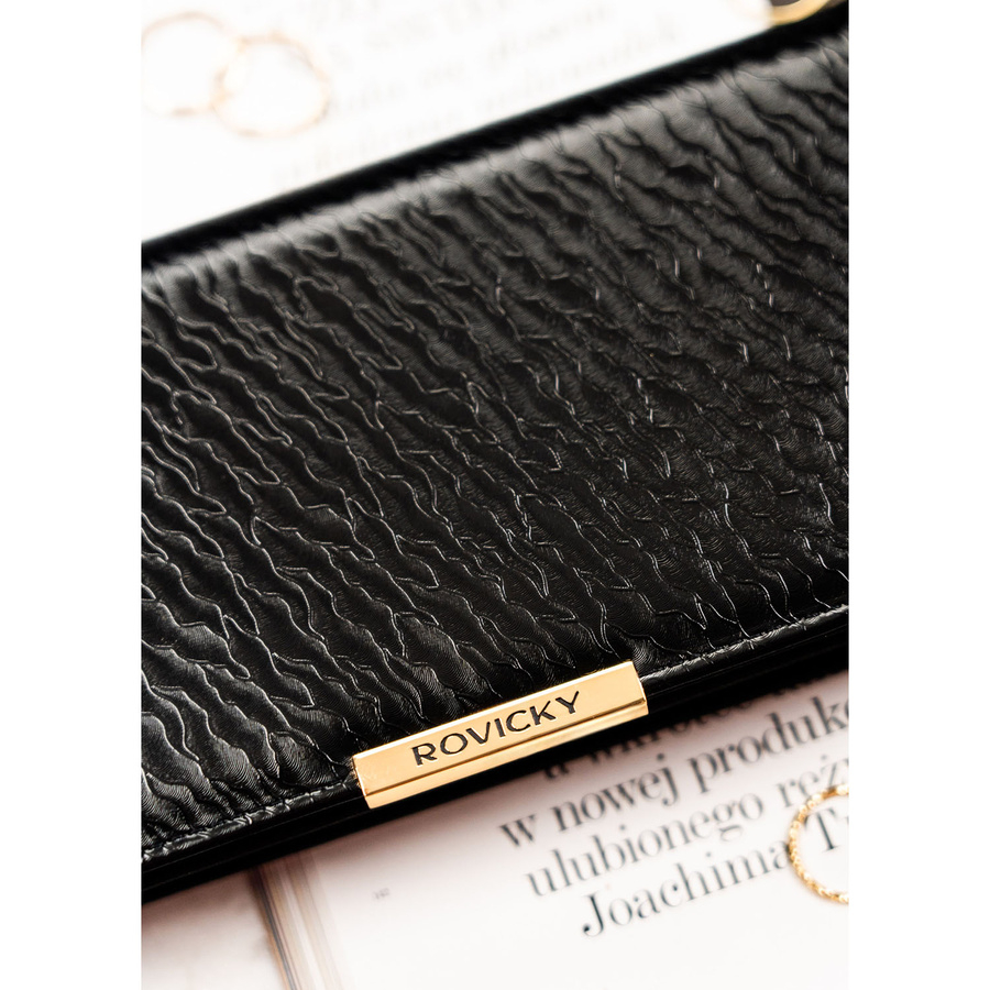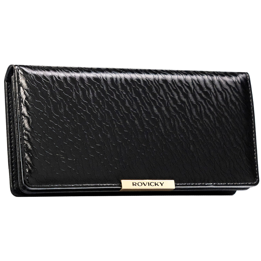 Duży portfel damski ze skóry ekologicznej w czarnym kolorze zamykany na zatrzask - Rovicky