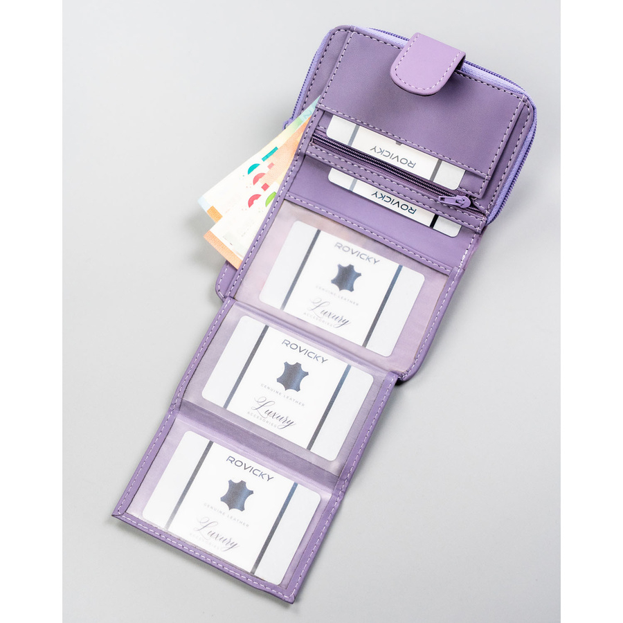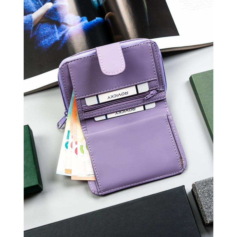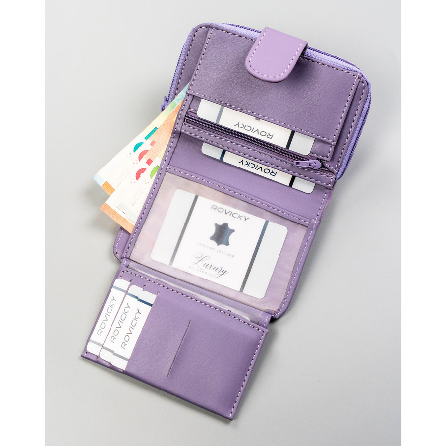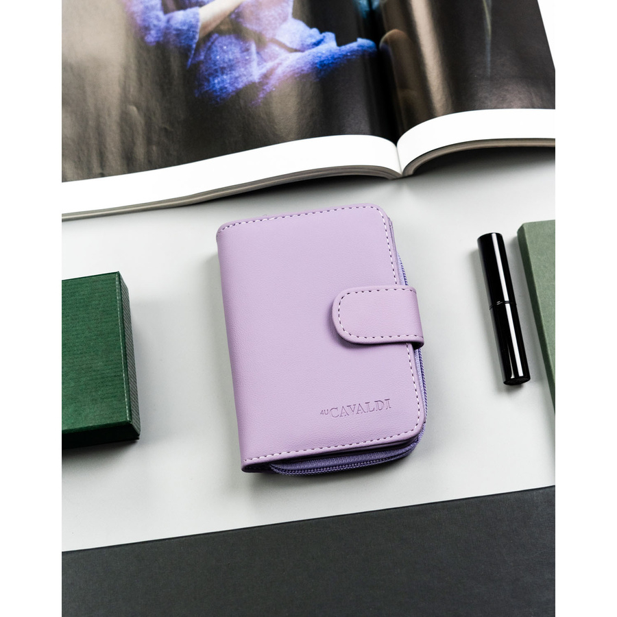 Portfel damski ze skóry ekologicznej w fioletowym kolorze, mieści dowód rejestracyjny - 4U Cavaldi
