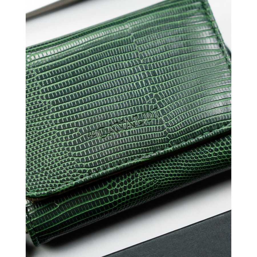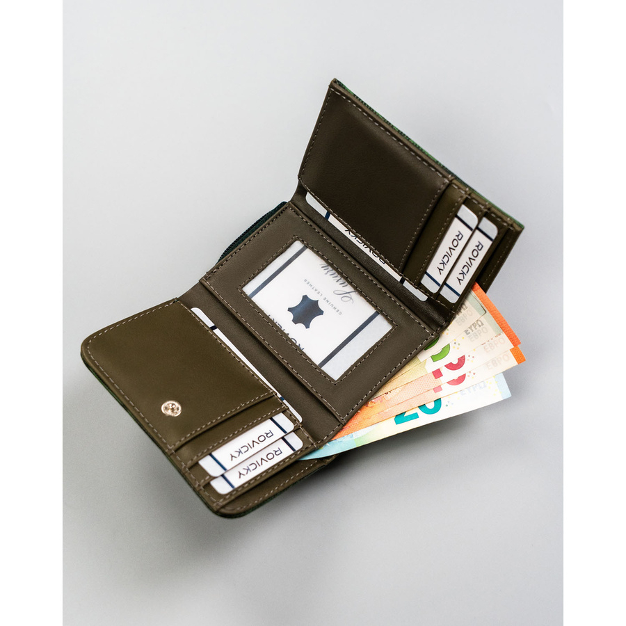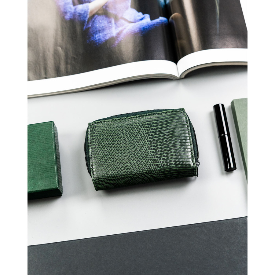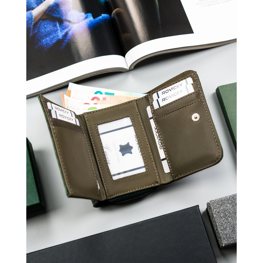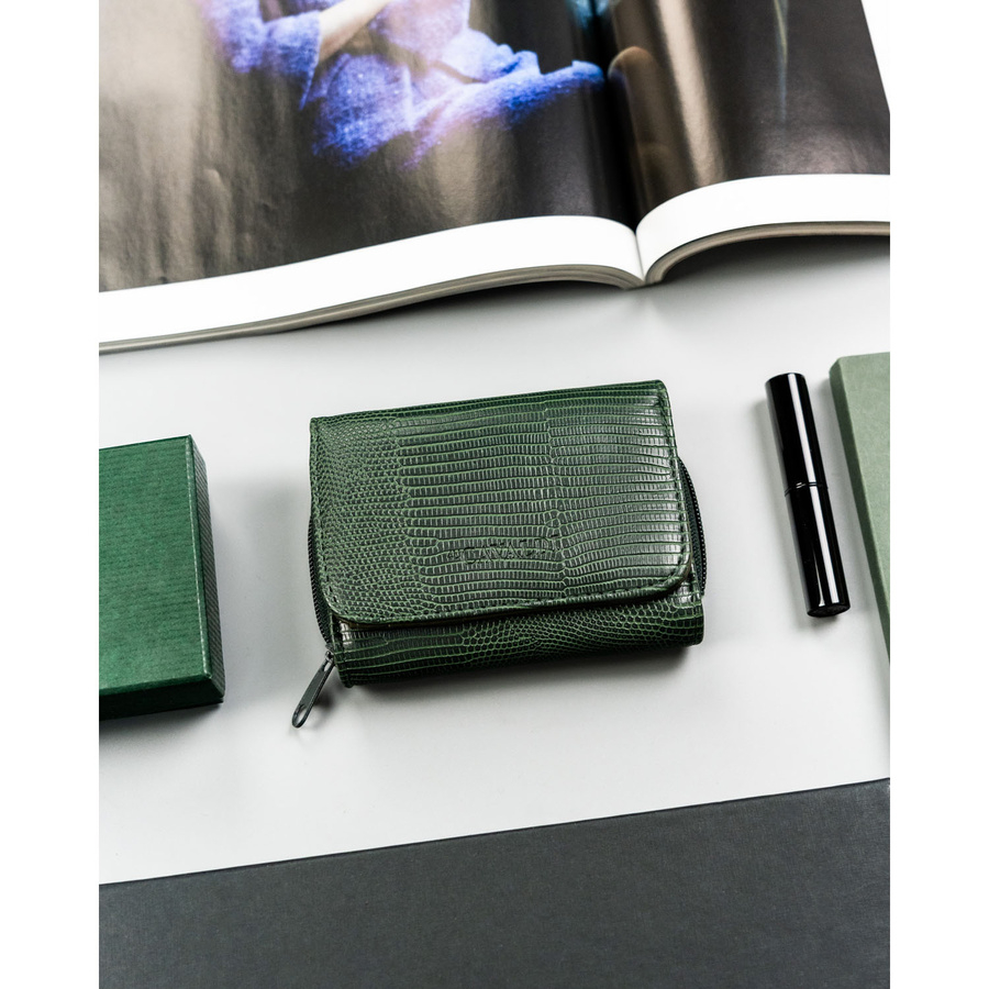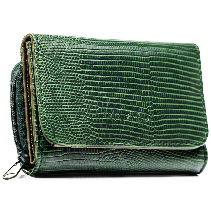 Mały, zielony portfel damski ze skóry ekologicznej zamykany na suwak i zatrzask - 4U Cavaldi