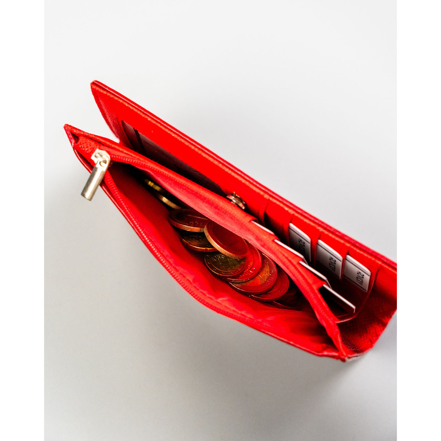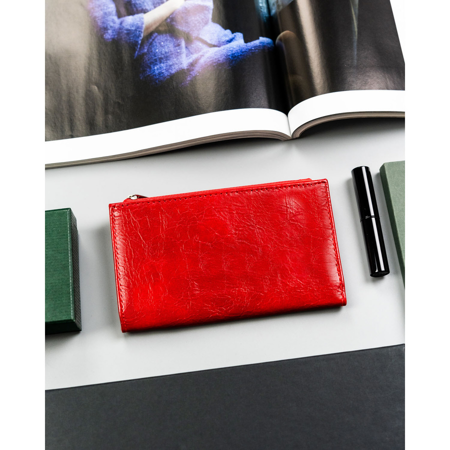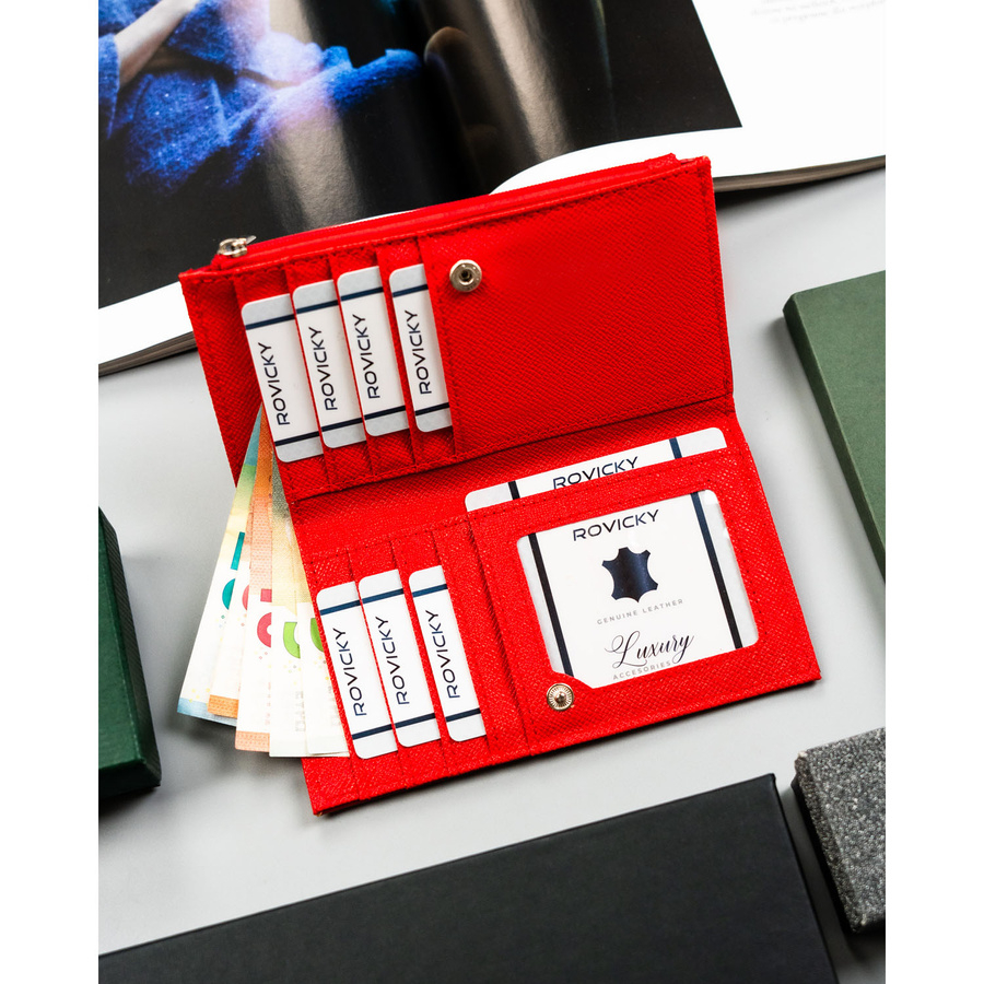 • klasyczny czerwony portfel damski - uniwersalny i ponadczasowy,