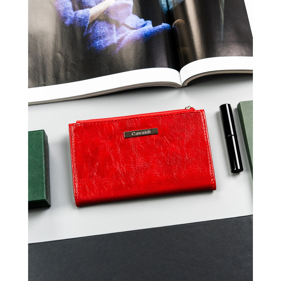 Duży portfel damski wykonany ze skóry ekologicznej w czerwonym kolorze - 4U Cavaldi