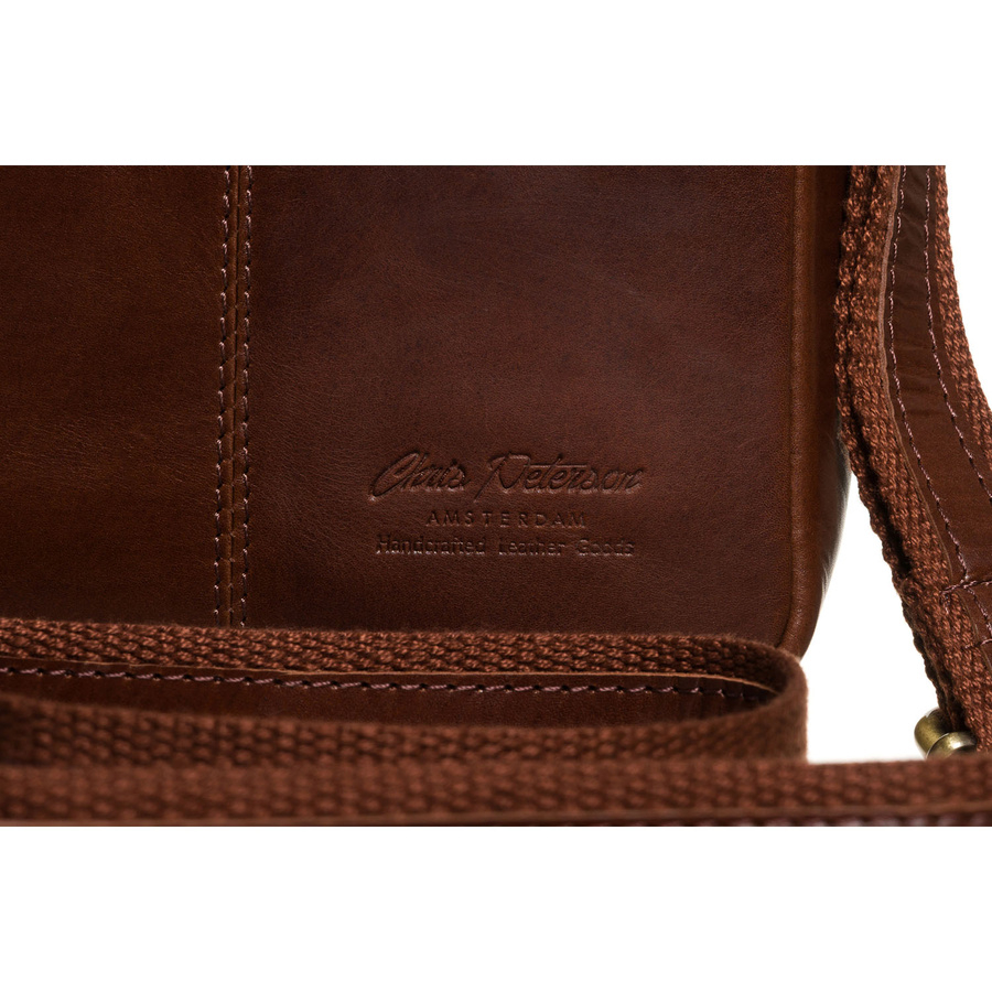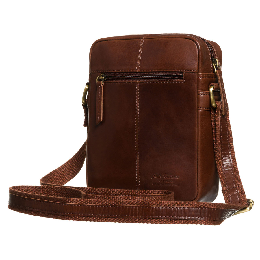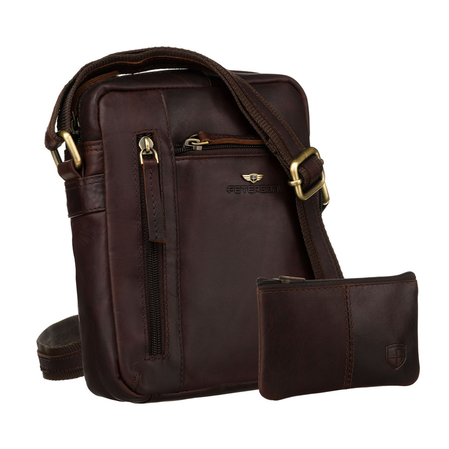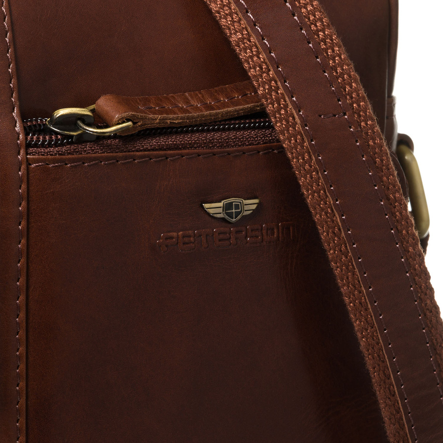 Brązowa, klasyczna, skórzana listonoszka męska z kieszonkami i etui - Peterson