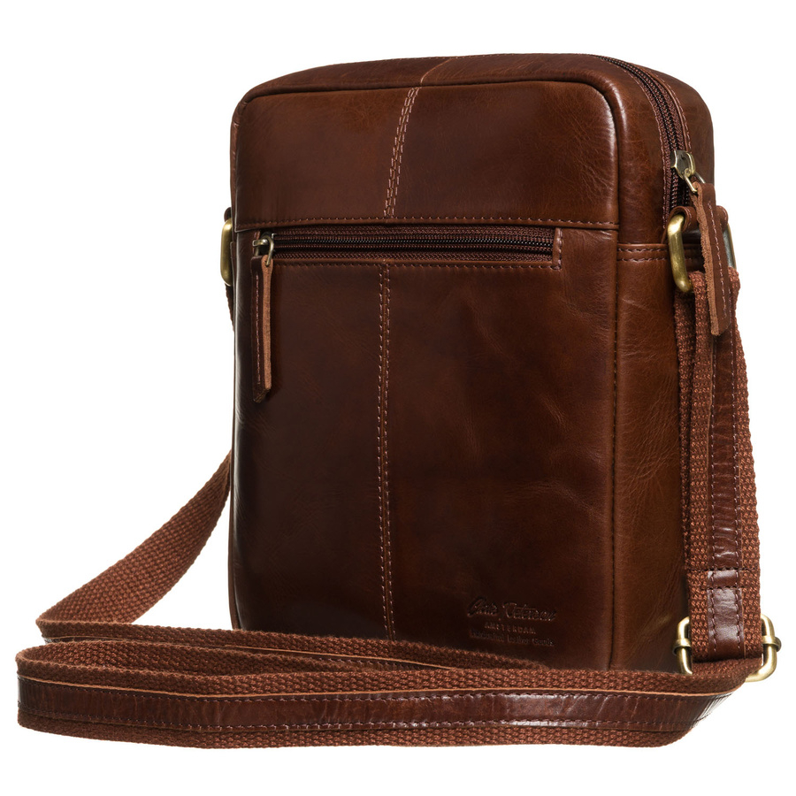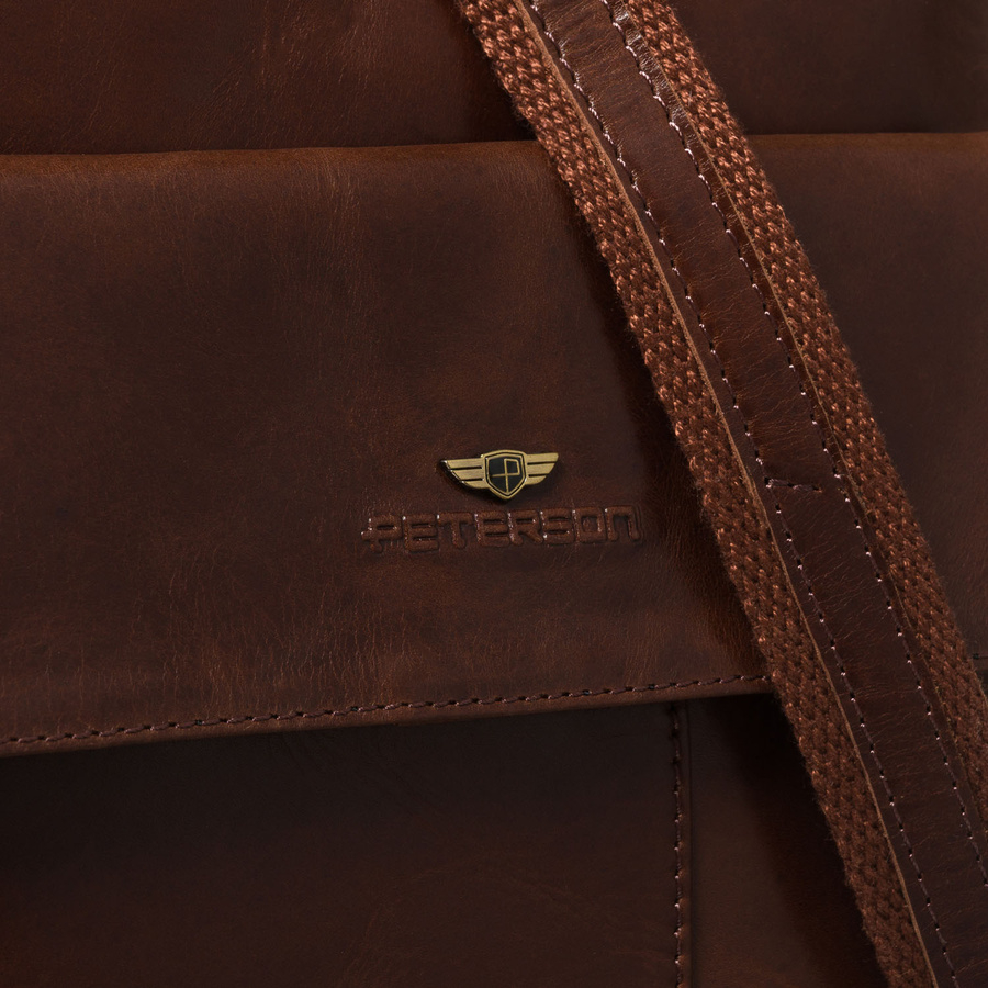Skórzana listonoszka męska w brązowym kolorze z saszetką w zestawie - Peterson
