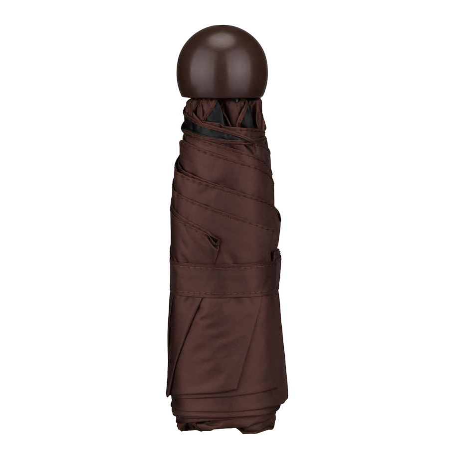 Stylowy, lekki i niezwykle praktyczny parasol kieszonkowy w brązowym kolorze, który doskonale sprawdzi się w codziennym użytkowaniu. Ma tylko 18cm długości po złożeniu. Wyposażony w solidny teleskopowy trzon.