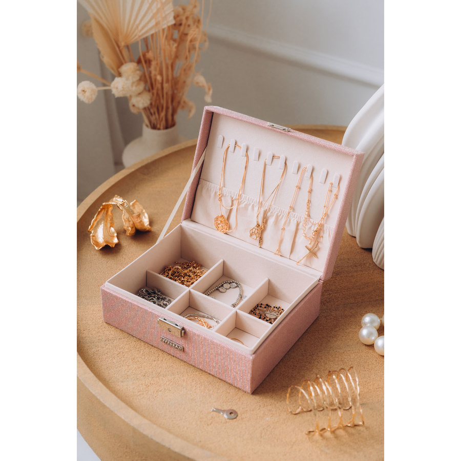 Fiecare element își are locul său, ceea ce înseamnă că bijuteriile tale arată întotdeauna perfect – fie că folosești cutia acasă, fie că le iei cu tine într-o călătorie.