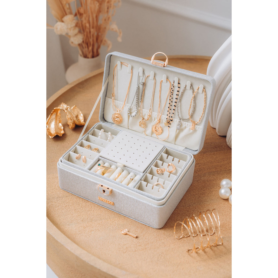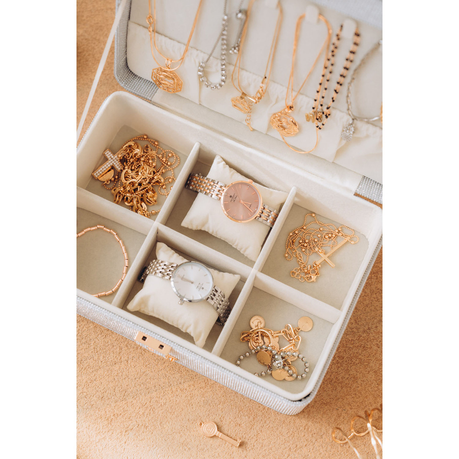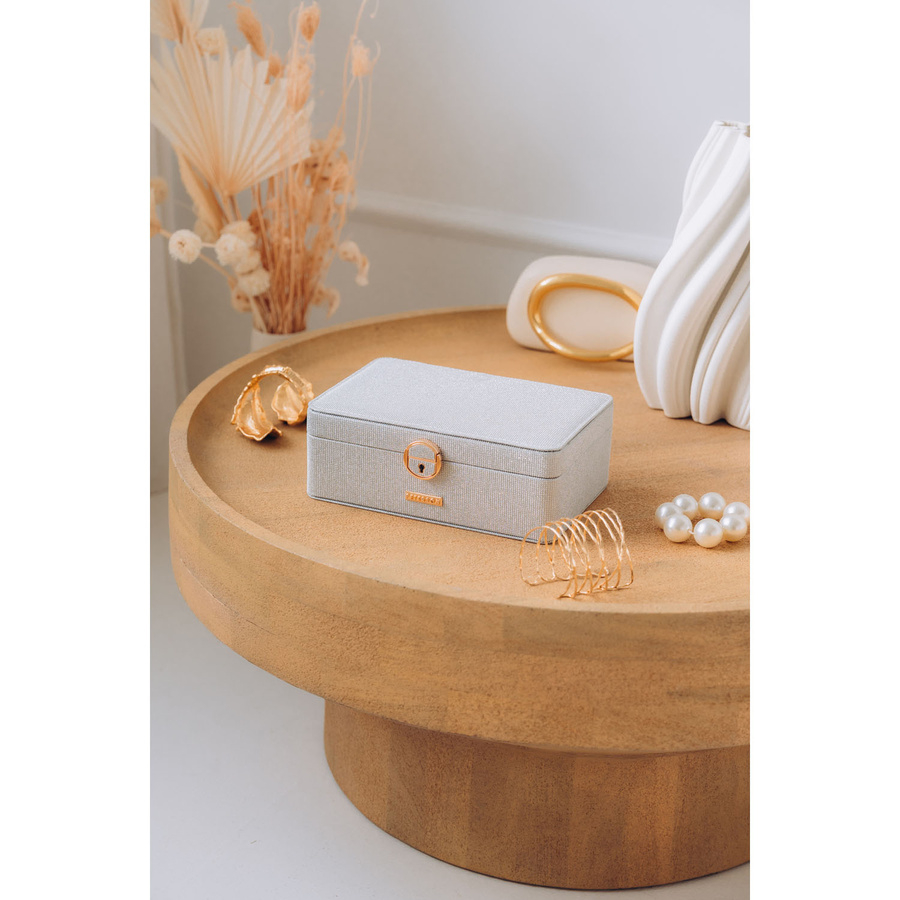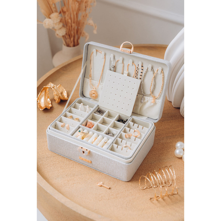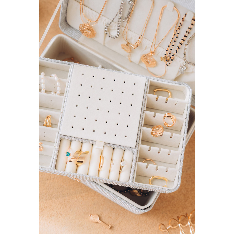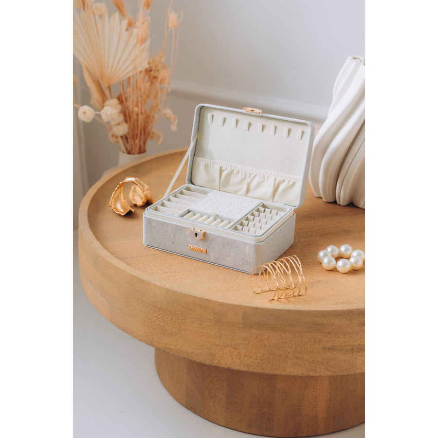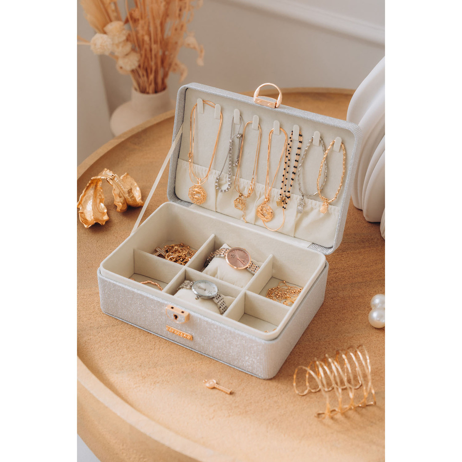 • Proiectată cu atenție la fiecare detaliu, vă permite să depozitați și să protejați elegant bijuteriile – atât acasă, cât și în călătorii.