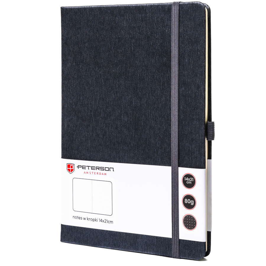 Notes Peterson® został zaprojektowany tak, by pisanie w nim było prawdziwą przyjemnością. Papier o gramaturze 80 g/m² jest gładki i przyjazny w dotyku, a delikatny układ kropek daje swobodę tworzenia – idealny do planowania, rysowania lub zapisywania pomysłów.