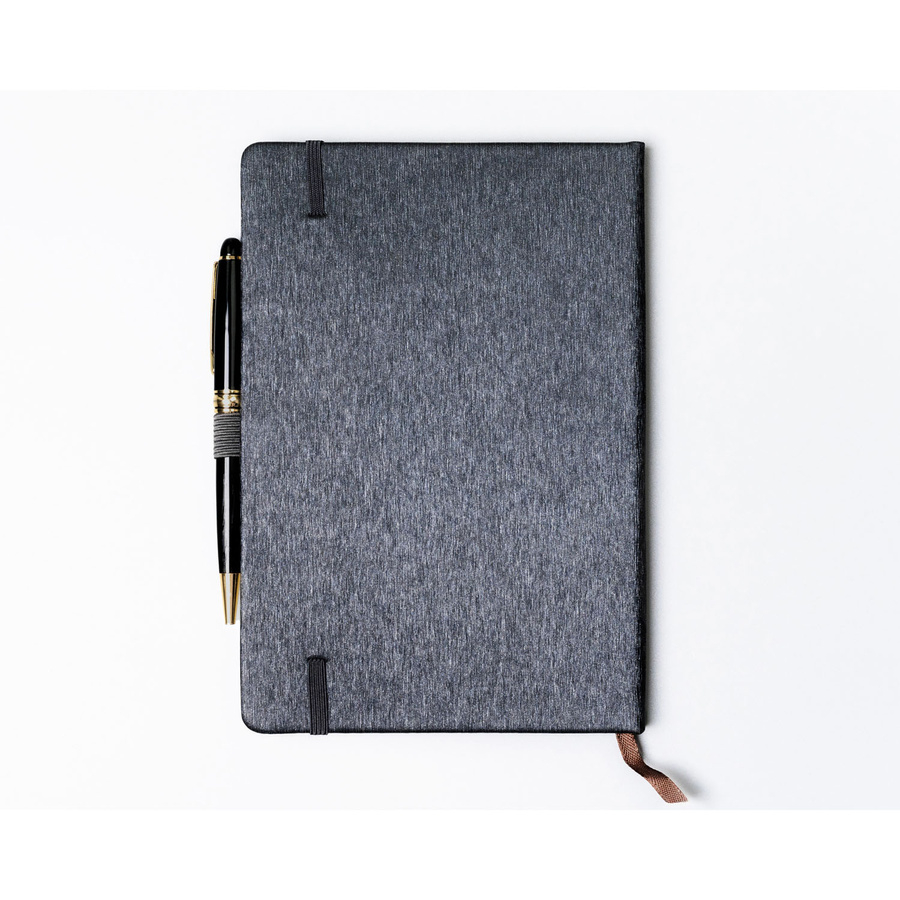 Notes w formacie A5 w szarym kolorze, wyposażony w gumkę zamykającą - Peterson