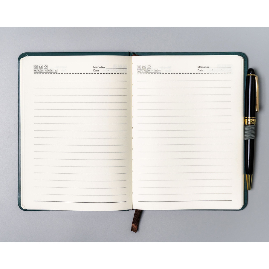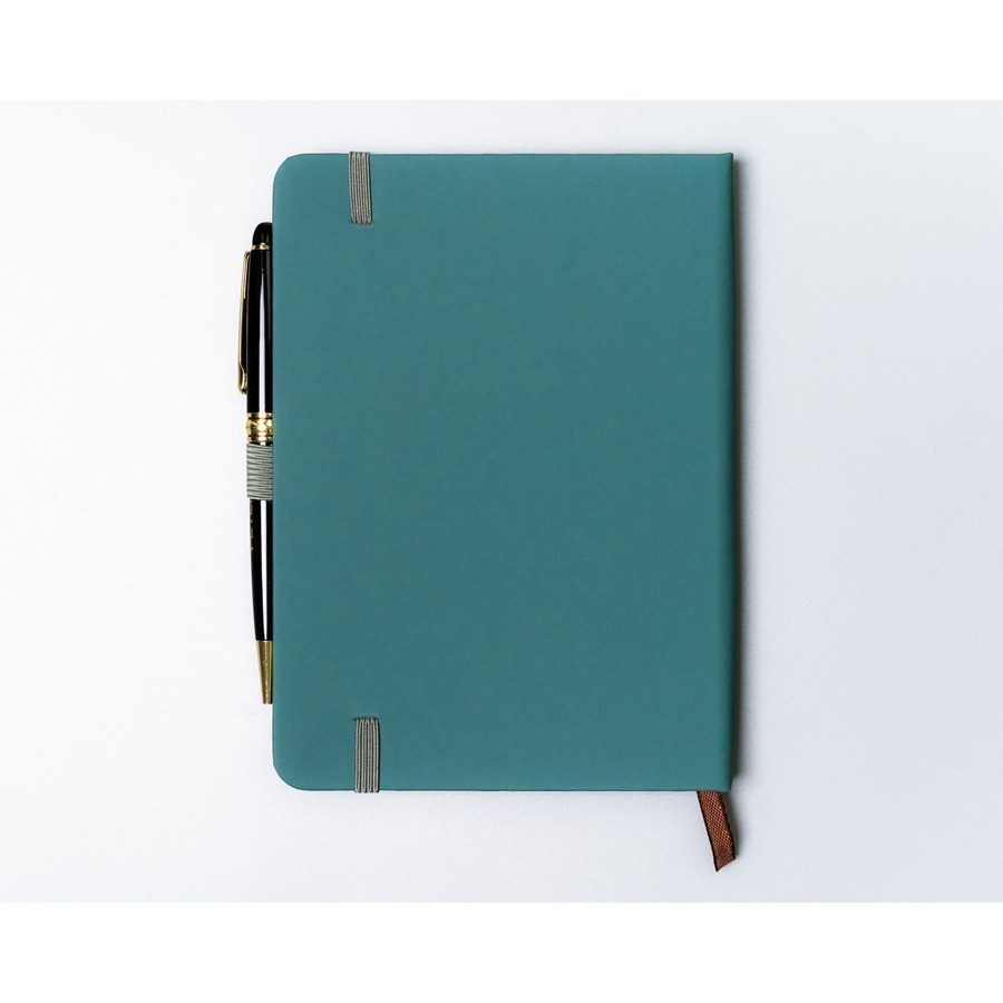 Zielony notes w formacie B6 zadrukowany w linie, wyposażony w pętelkę na długopis - Peterson