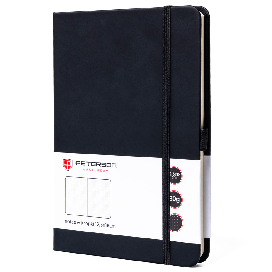 Praktyczna gumka chroni notatki przed przypadkowym otwarciem, a wbudowana zakładka pozwala szybko wrócić do najważniejszych stron. Solidna, elegancka okładka zapewnia trwałość i sprawia, że notes świetnie prezentuje się w każdej sytuacji. Doskonały również jako drobny, stylowy upominek.