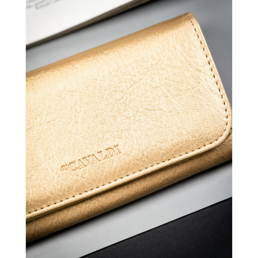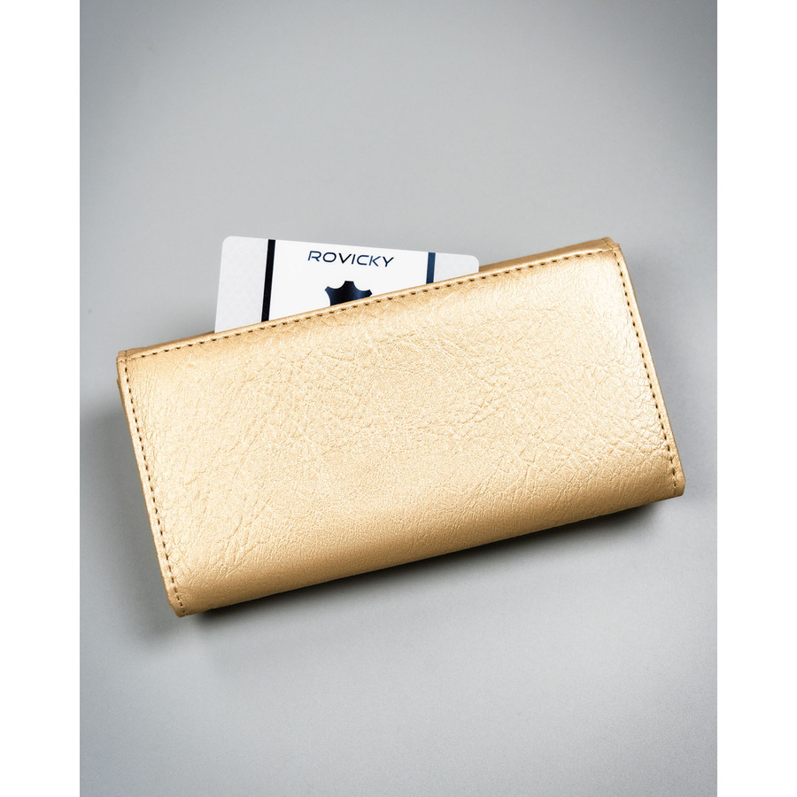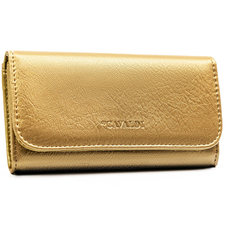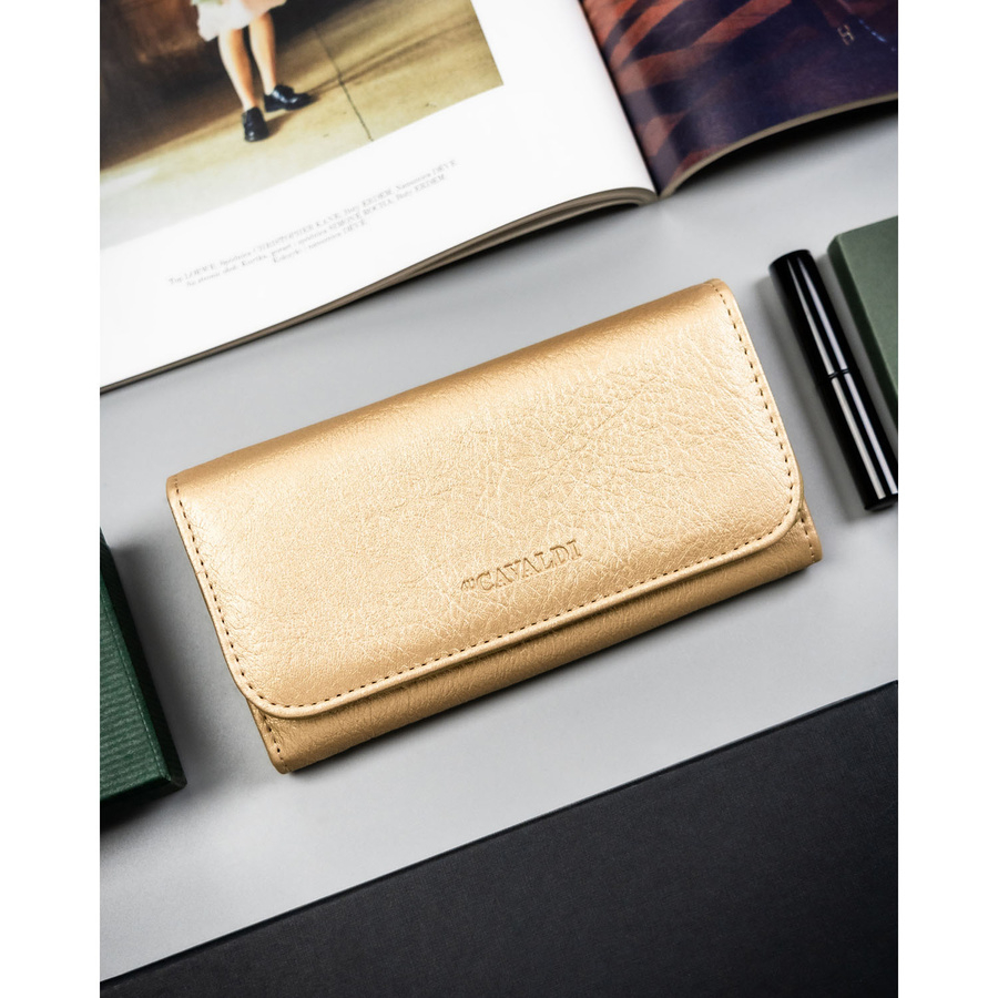 Duży portfel damski ze skóry ekologicznej w złotym kolorze, zamykany zatrzaskiem - 4U Cavaldi