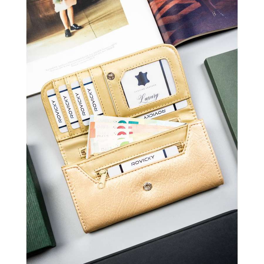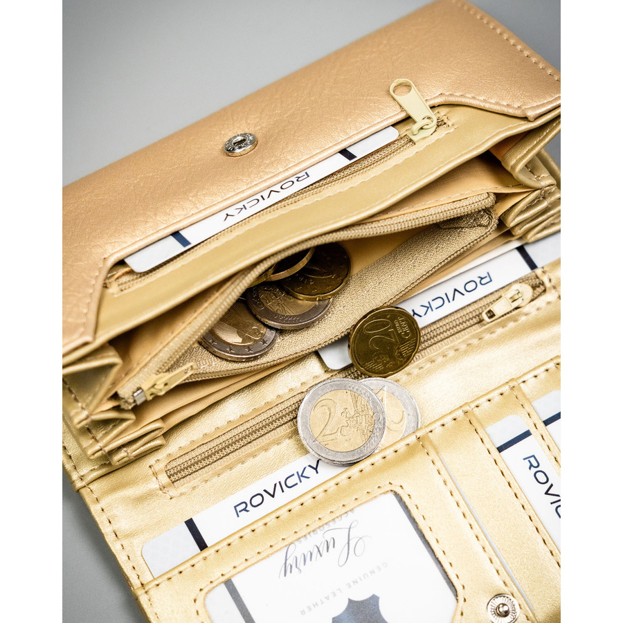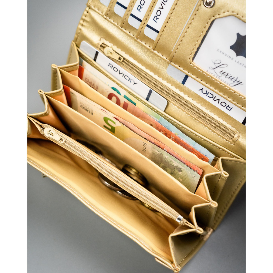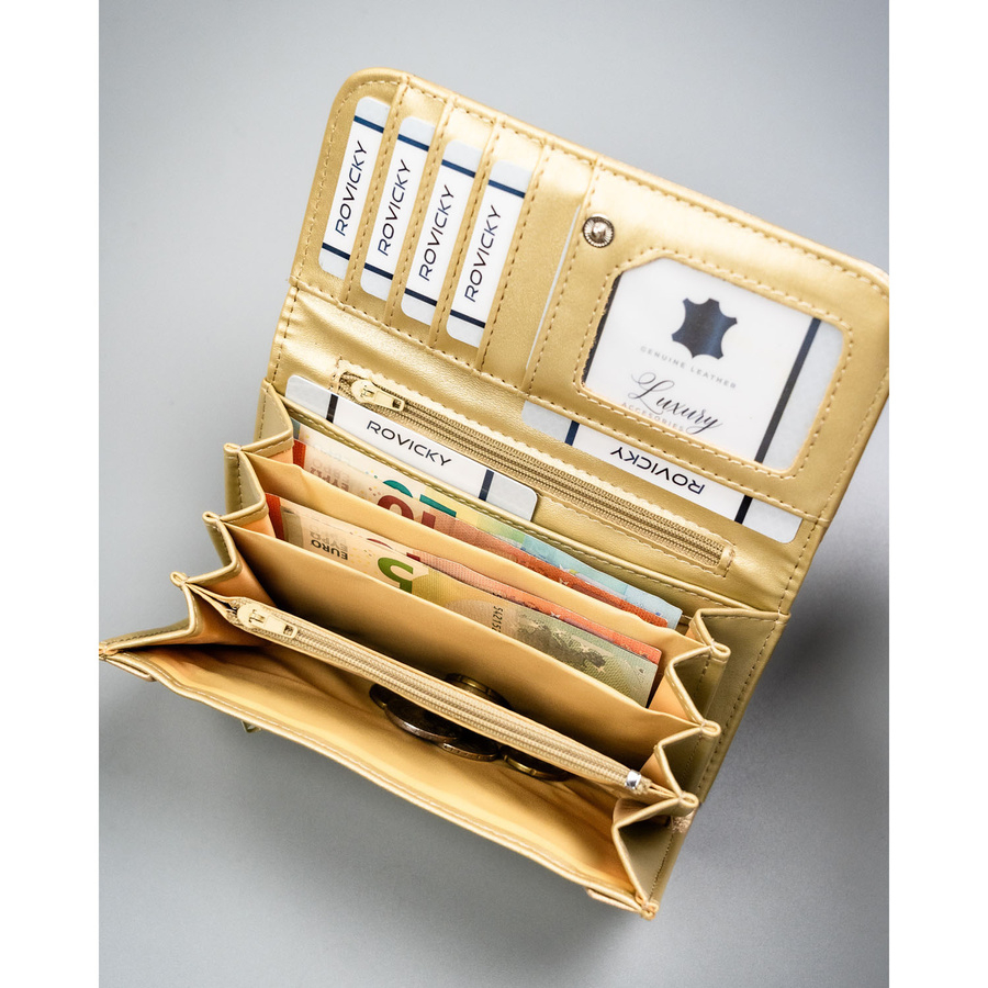 Duży portfel damski ze skóry ekologicznej w złotym kolorze, zamykany zatrzaskiem - 4U Cavaldi
