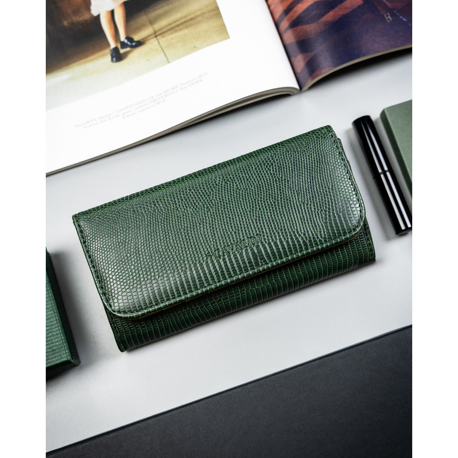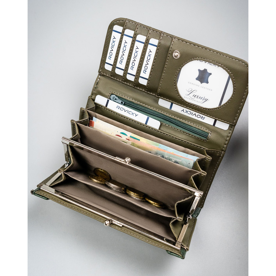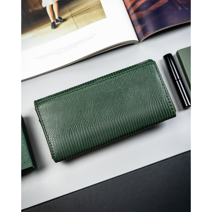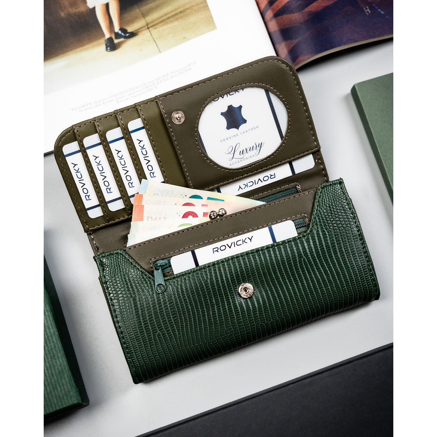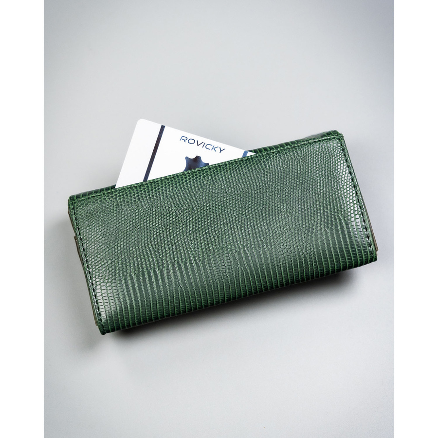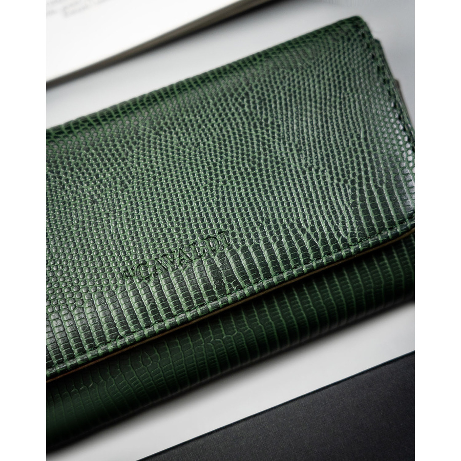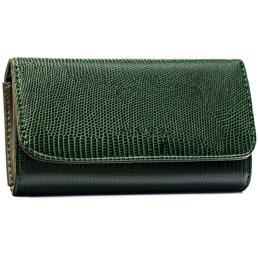 Zielony, poziomy portfel damski ze skóry ekologicznej zamykany zatrzaskiem - 4U Cavaldi