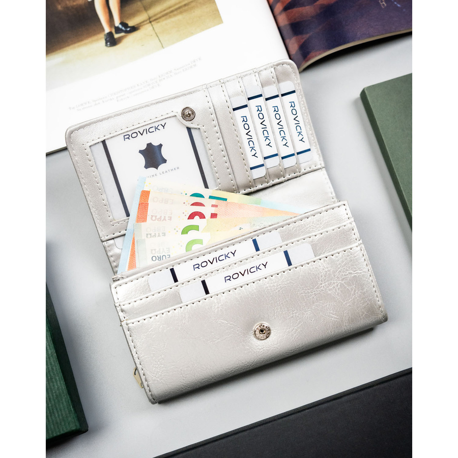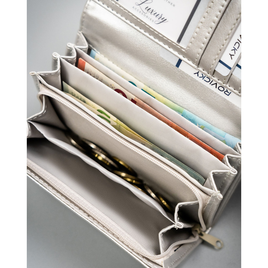 Funkcjonalny i szykowny - ten model doskonale odnajdzie się w codziennym użytkowaniu, jak i podczas bardziej formalnych wyjść. Zapewnia komfort przechowywania najważniejszych drobiazgów, pomagając utrzymać porządek w dokumentach i gotówce. To świetny wybór dla osób, które oczekują harmonii pomiędzy estetyką a praktycznością.