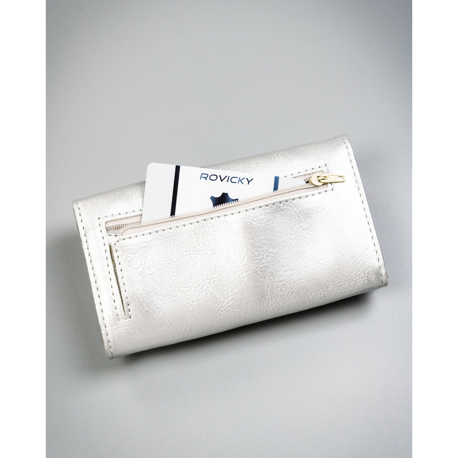 Z tyłu portfela znajduje się praktyczny schowek, który świetnie sprawdzi się na najczęściej używane przedmioty. Możesz w nim bezpiecznie przechowywać kartę, bilet, paragon lub drobną notatkę, mając je zawsze pod ręką. To wygodne rozwiązanie, które oszczędza czas i ułatwia organizację na co dzień.