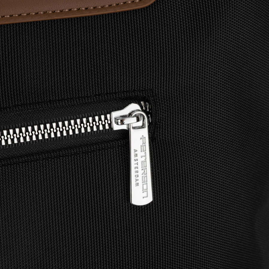 Model łączy w sobie trwały materiał z akcentami ze skóry ekologicznej, które podkreślają jej nowoczesny charakter i dodają elegancji.