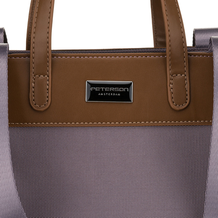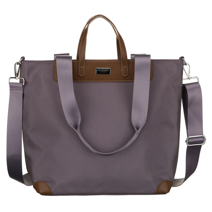Duża shopperka damska w szarym kolorze, jednokomorowa, zawieszona na uchwytach i doczepianym pasku - Peterson