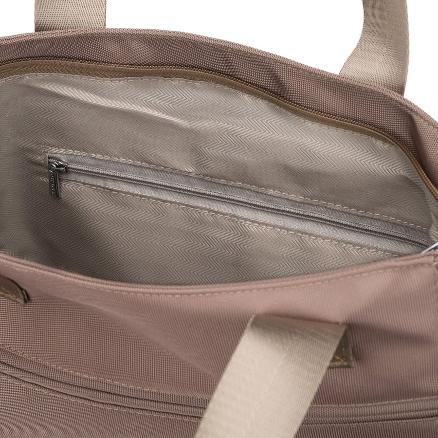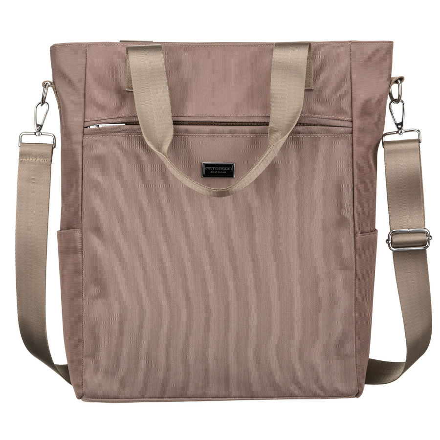 Beżowa shopperka damska na uchwytach i doczepianym pasku, zamykana suwakiem - Peterson